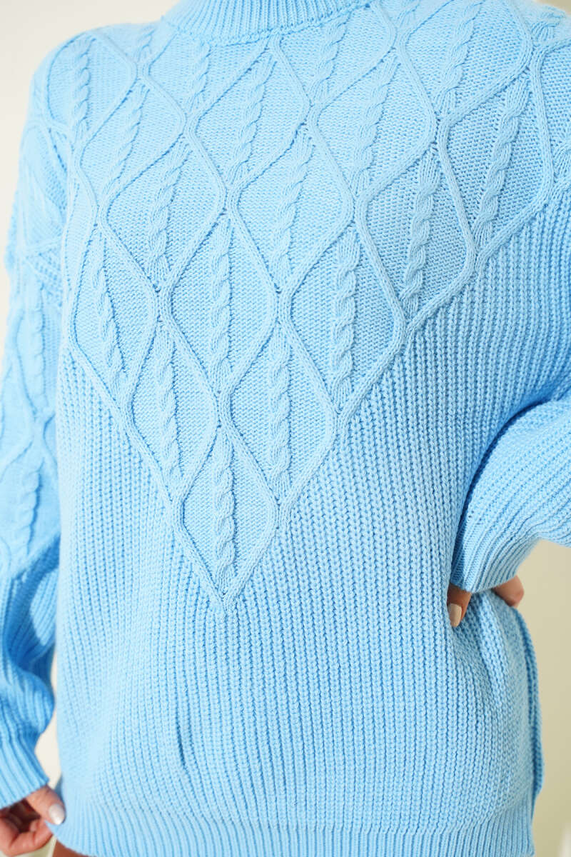 Örgü İşlemeli Triko Kazak Mavi