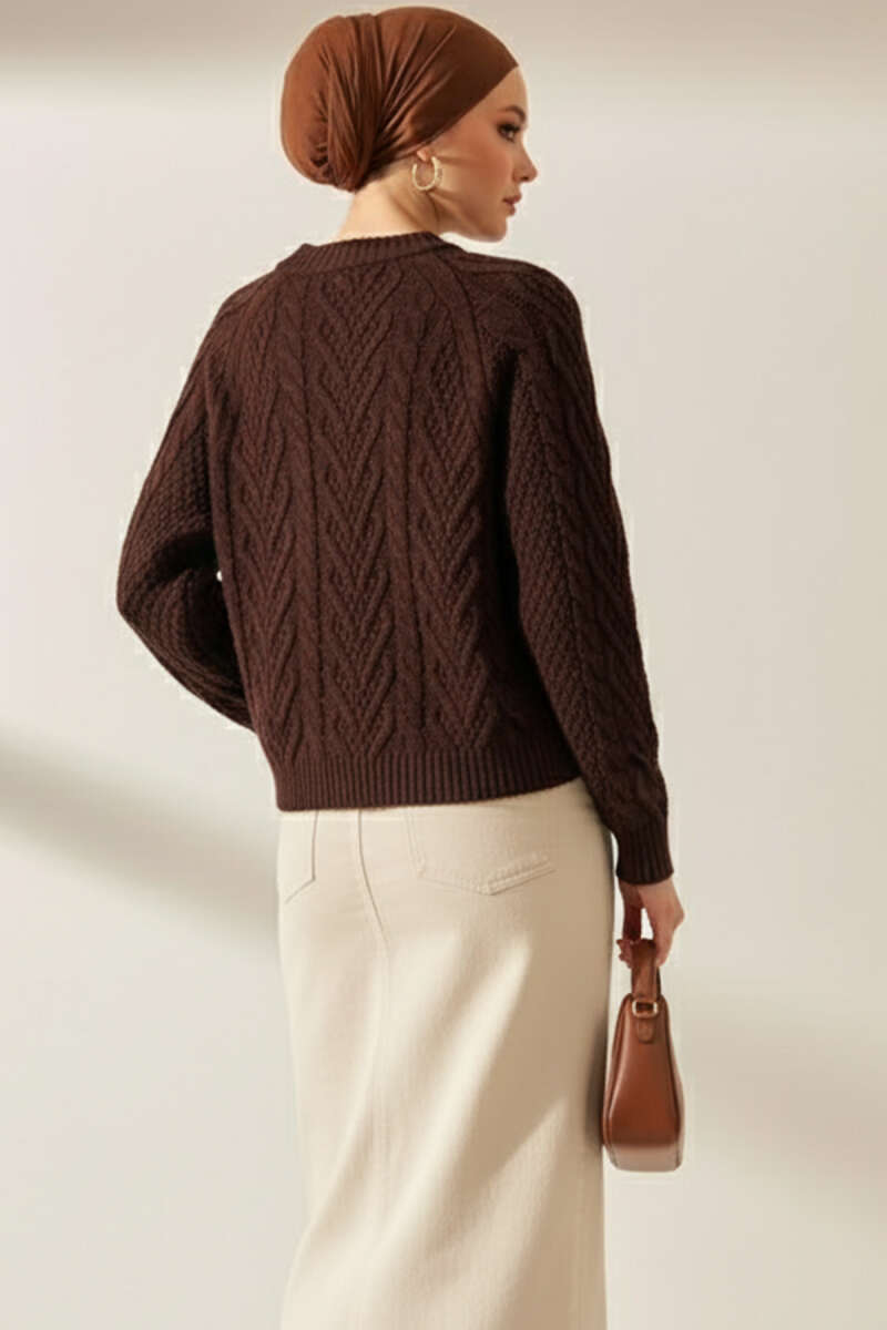 Bisiklet Yaka Sakal Detaylı Kazak Kahve