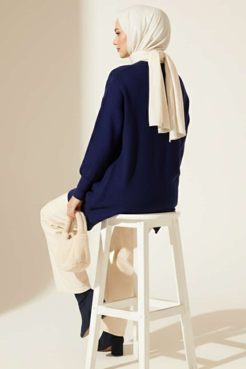 Örgü Kabartmalı Yumoş Triko Tunik Lacivert