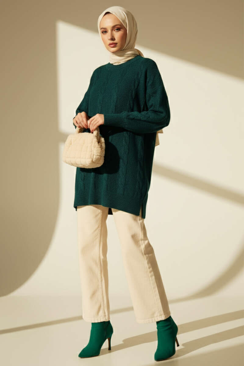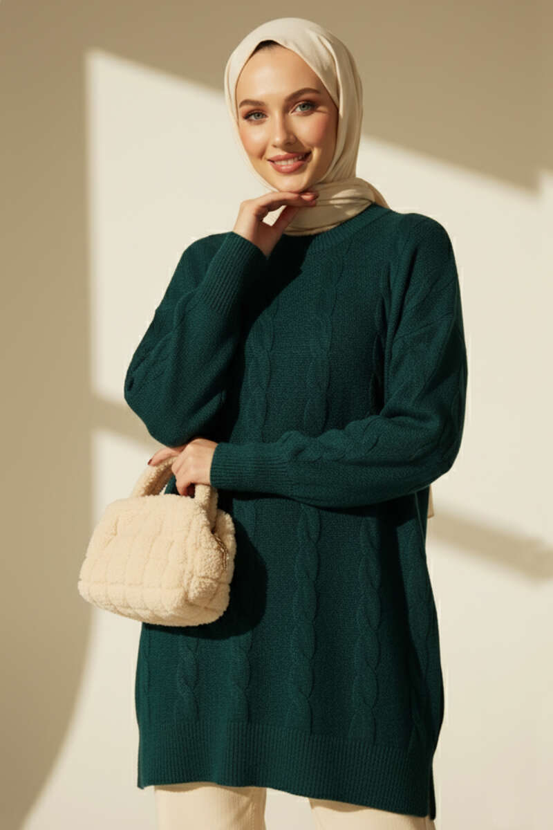 Örgü Kabartmalı Yumoş Triko Tunik Nefti