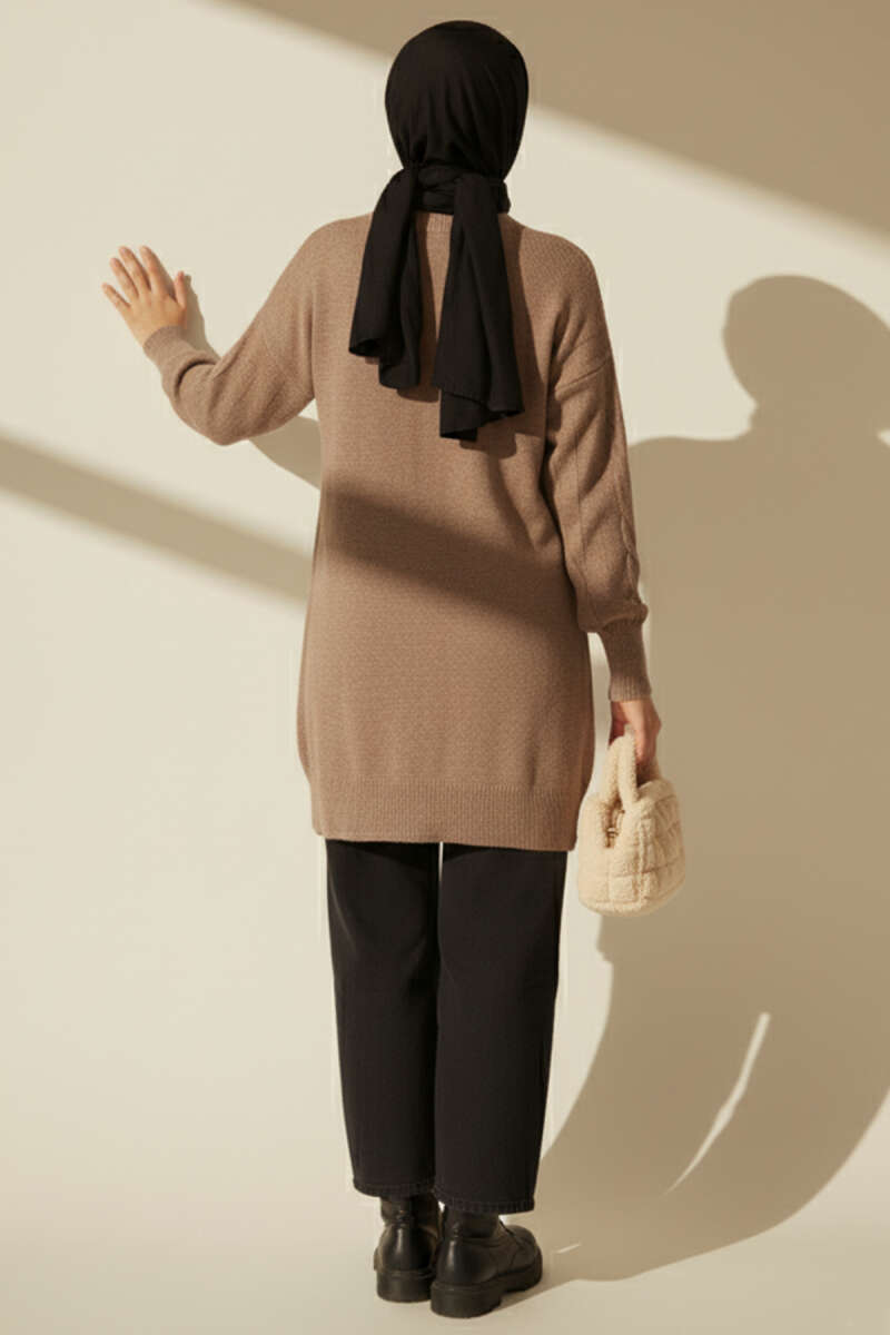Örgü Kabartmalı Yumoş Triko Tunik Vizon