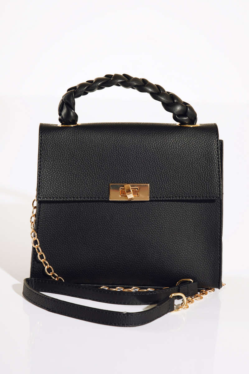 Örgü Kulp Omuz Çantası Siyah