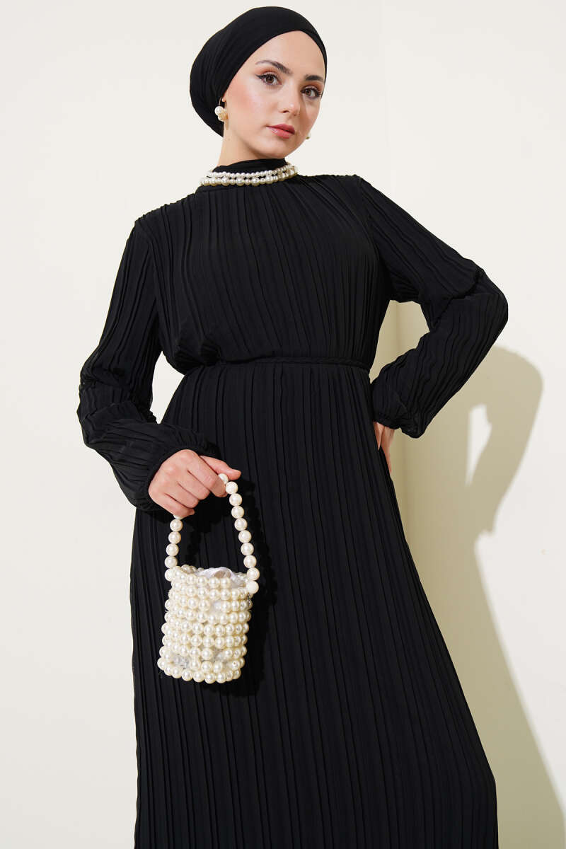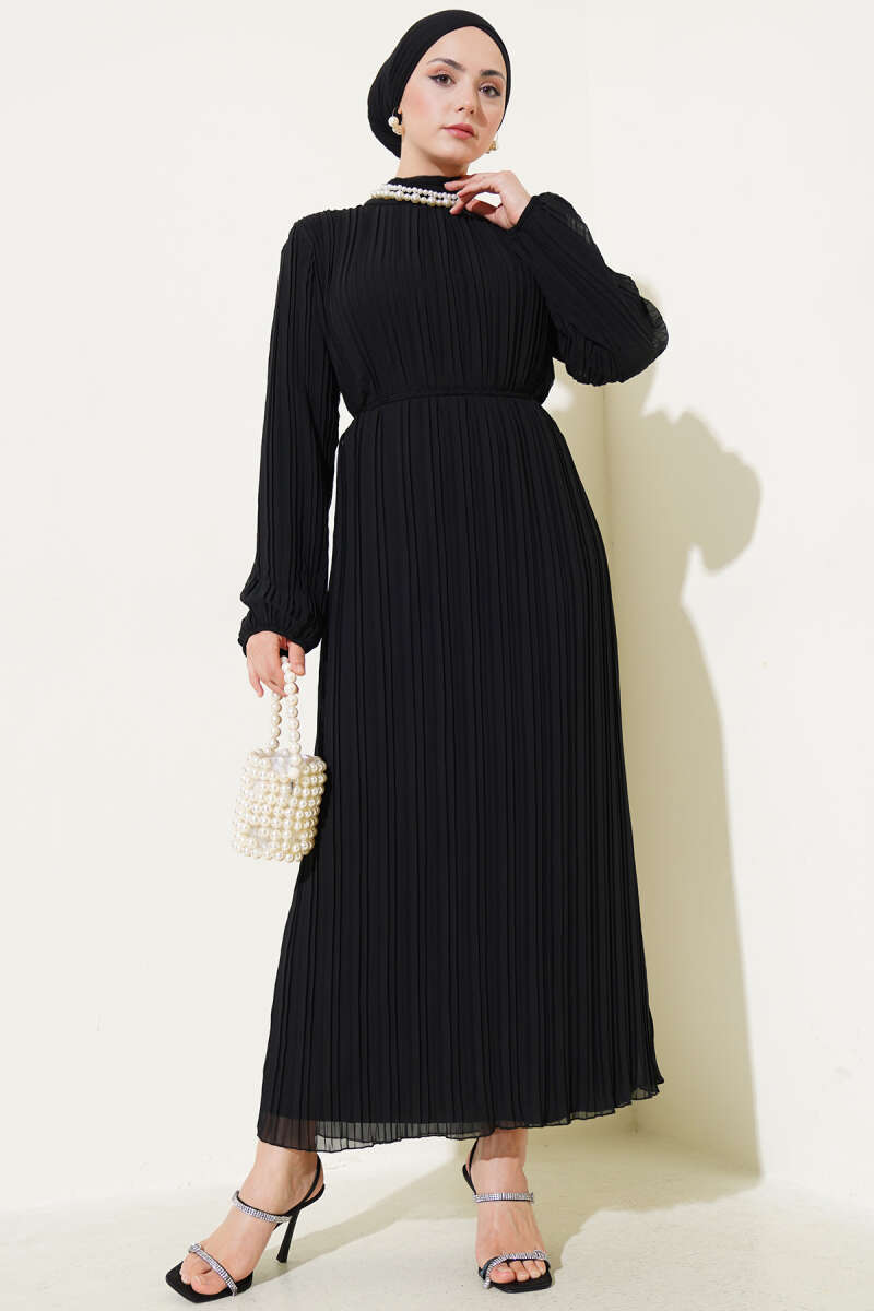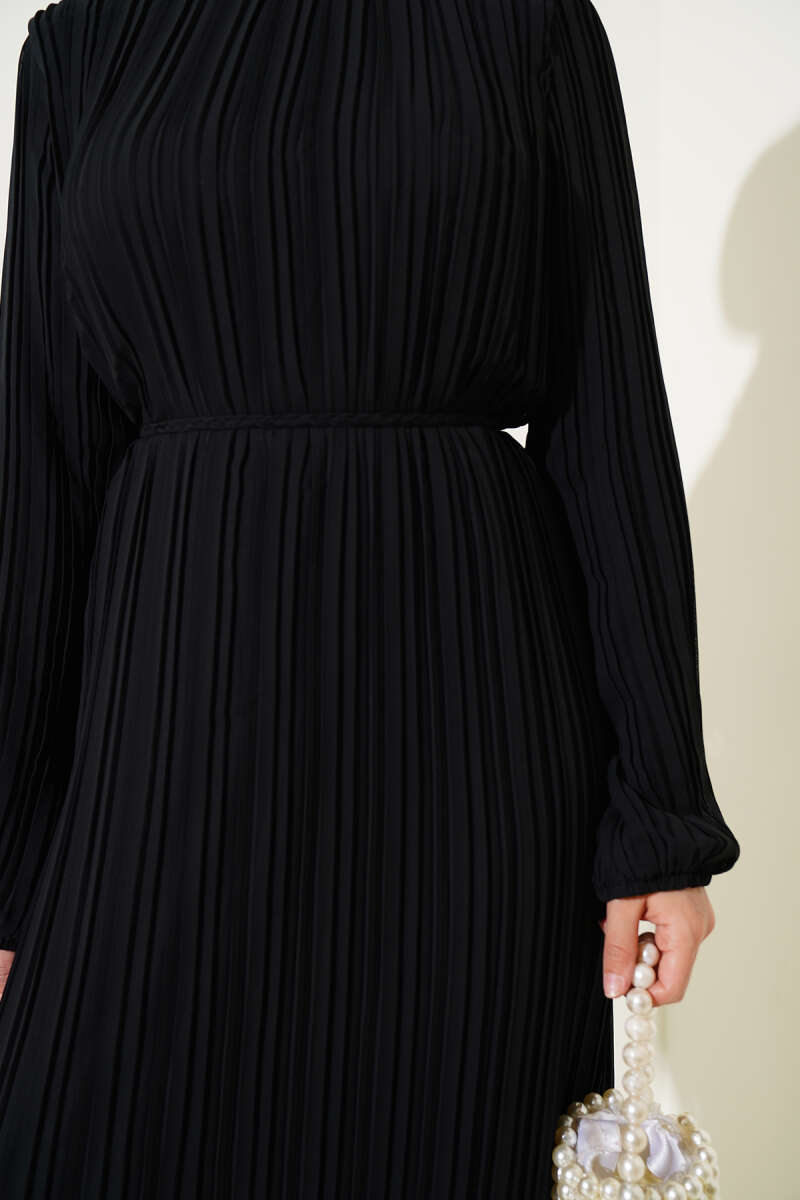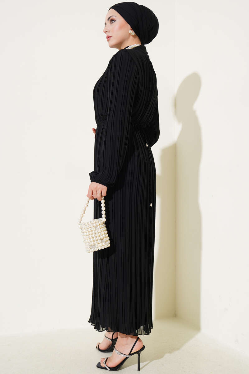 Kol Ucu Armalı İp Bağcıklı Elbise Siyah
