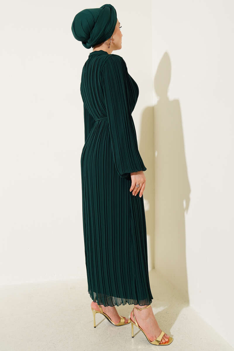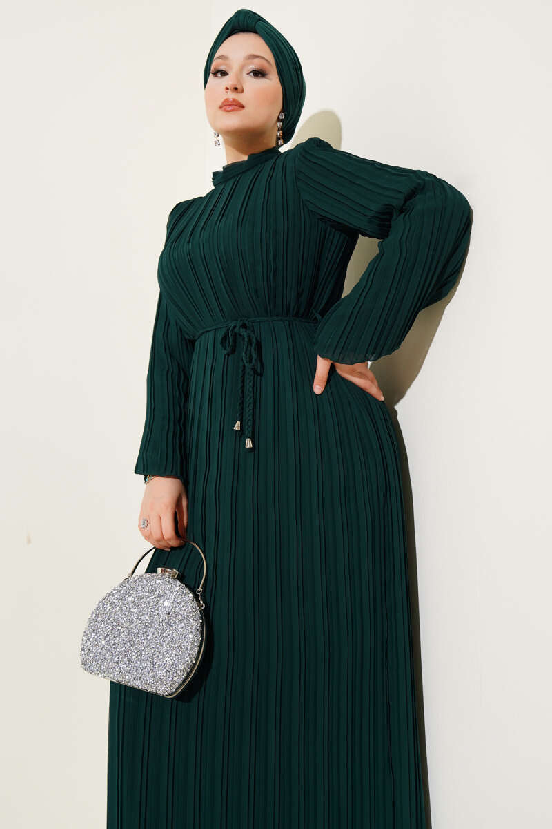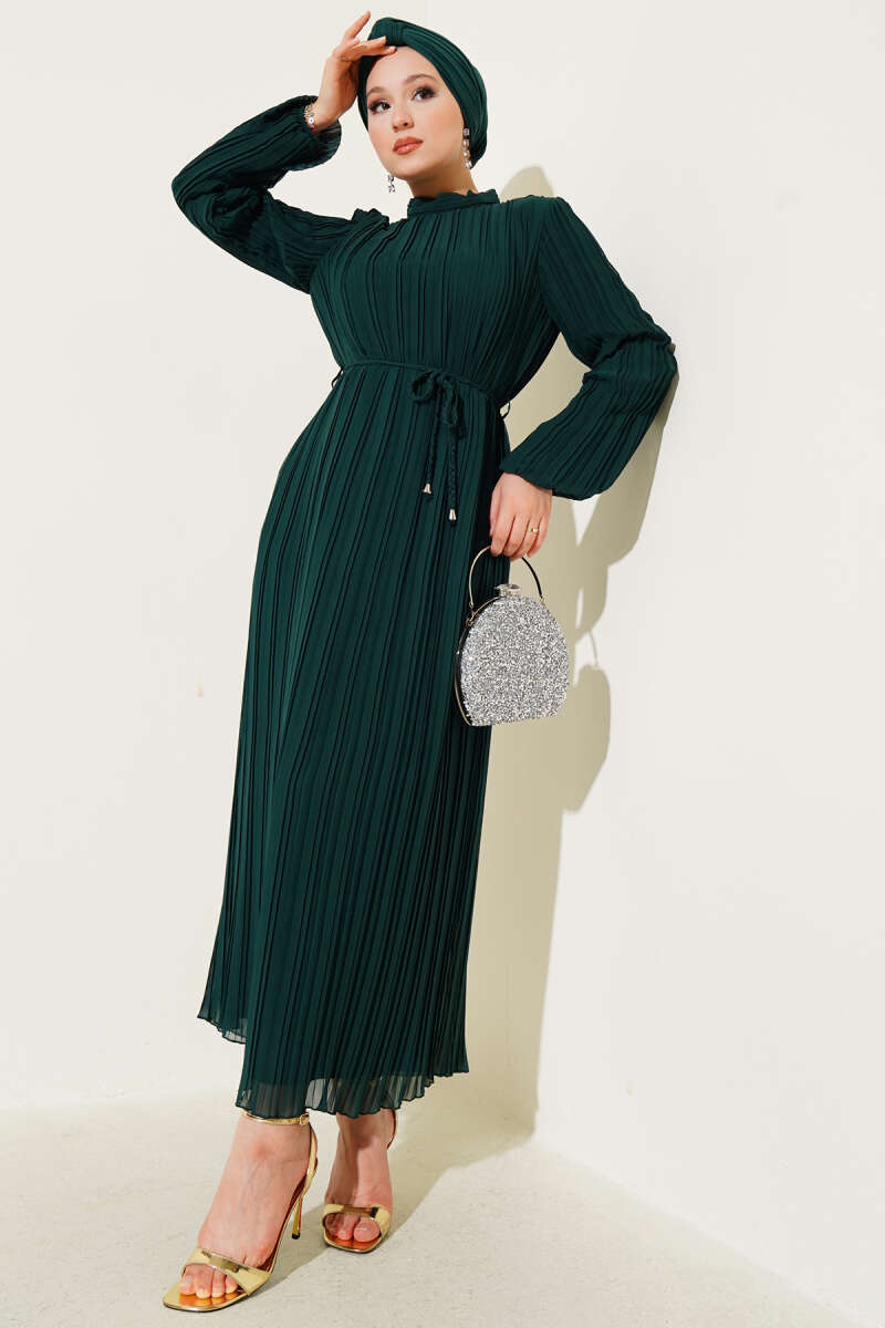 Sıra Taşlı Balon Kol Abiye Elbise Haki