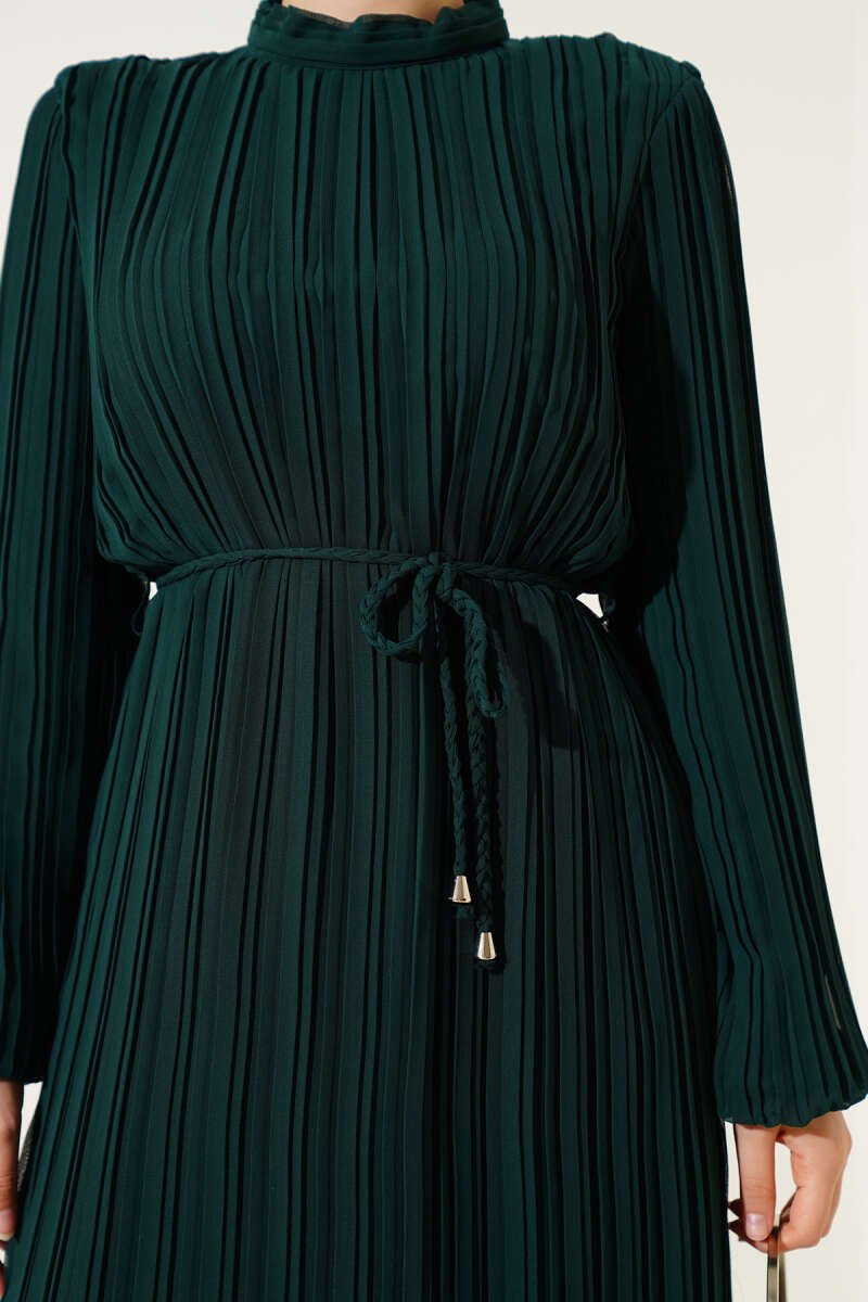Yarım Taş Düğmeli Bağlamalı Elbise Gül Kurusu