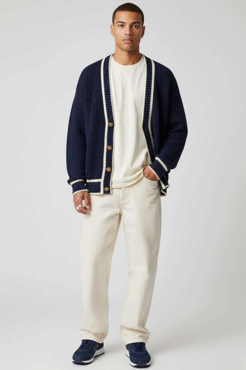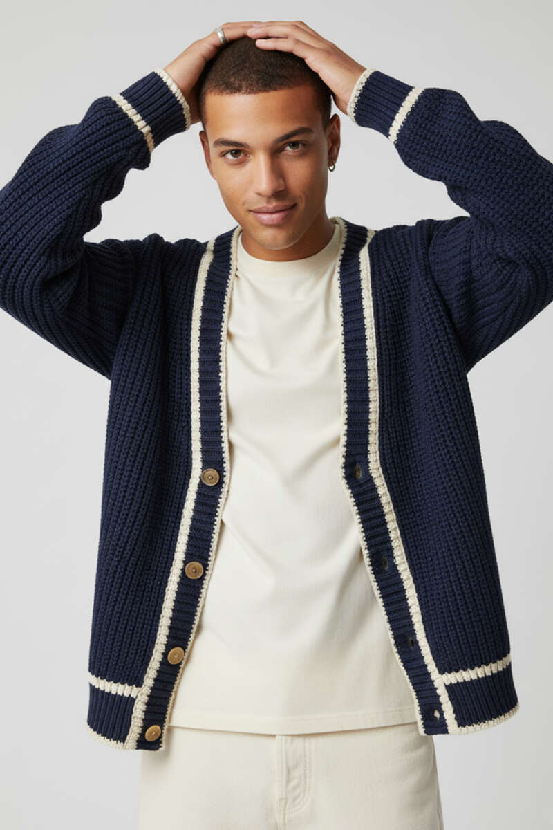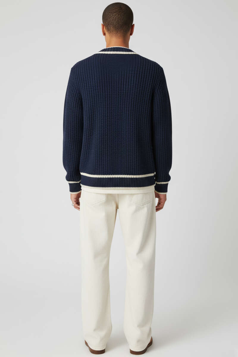 V Yaka Düğmeli Erkek Triko Hırka Kemik