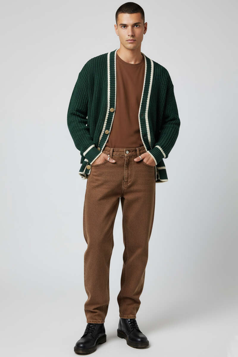 V Yaka Düğmeli Erkek Triko Hırka Kahve