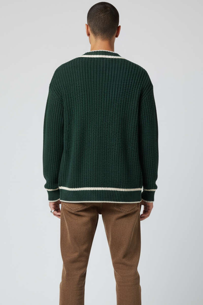 V Yaka Düğmeli Erkek Triko Hırka Kemik
