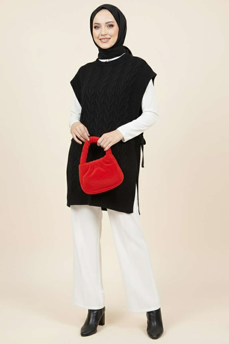 Örgü Yandan Bağlamalı Triko Süveter Bordo