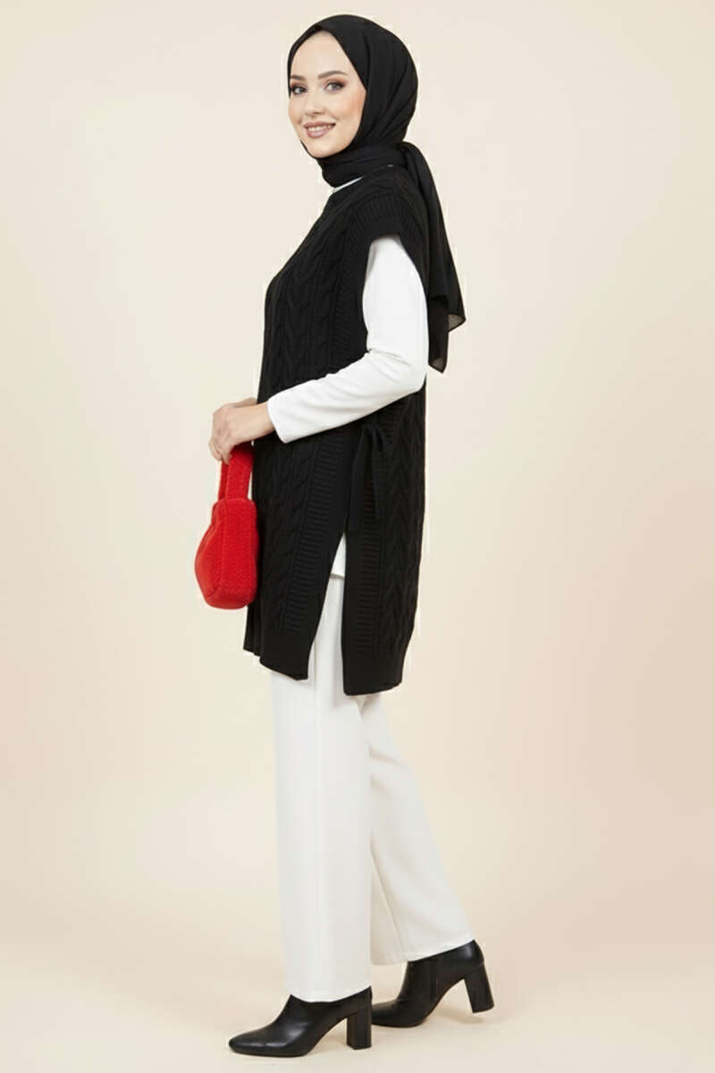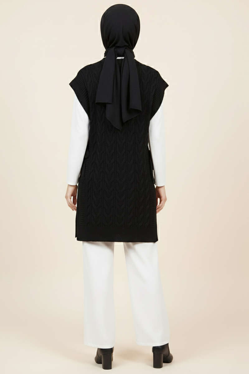 Kruvaze Yaka Düğmeli Detaylı Yelek Siyah