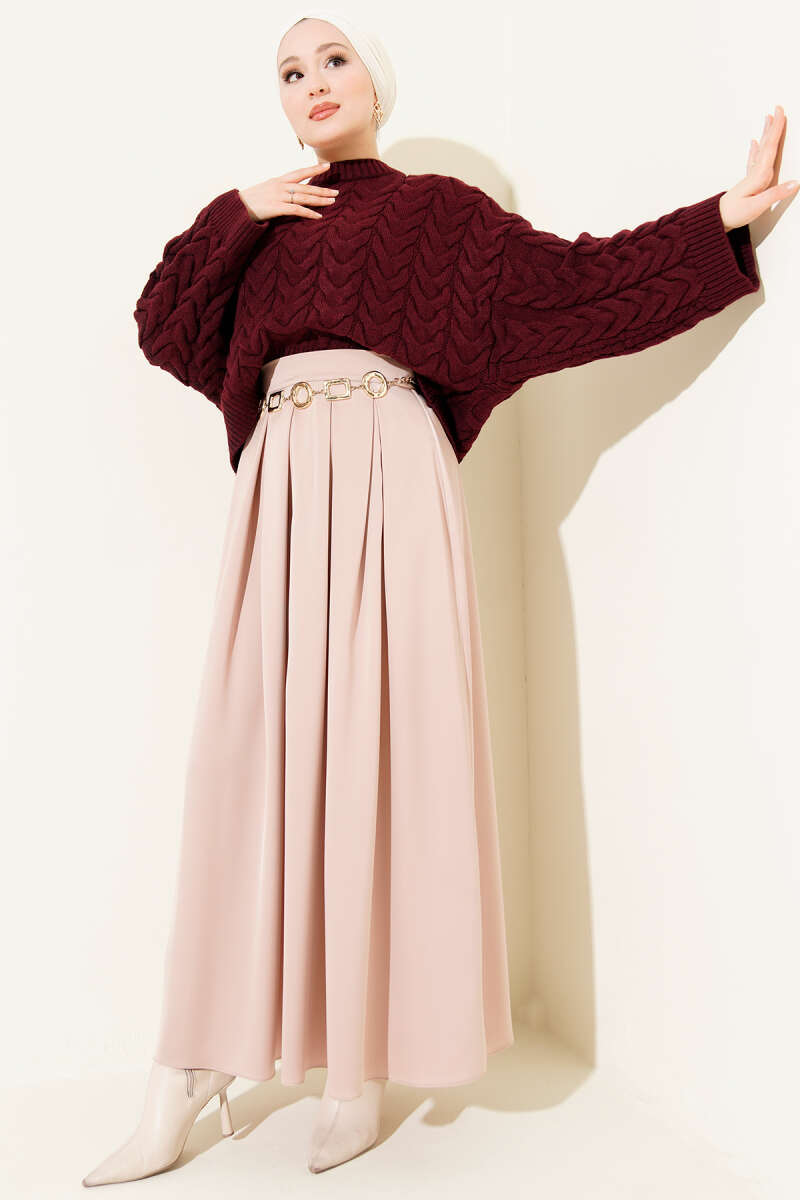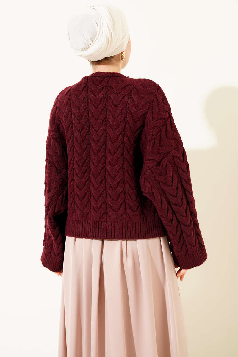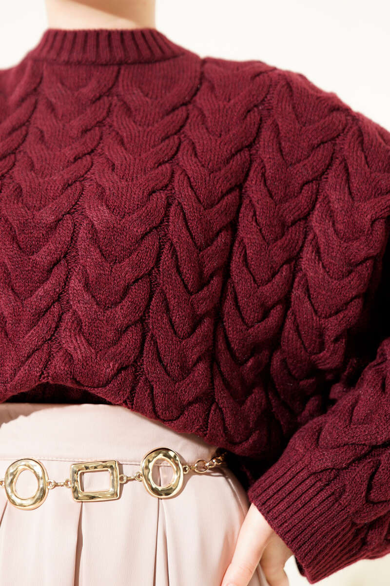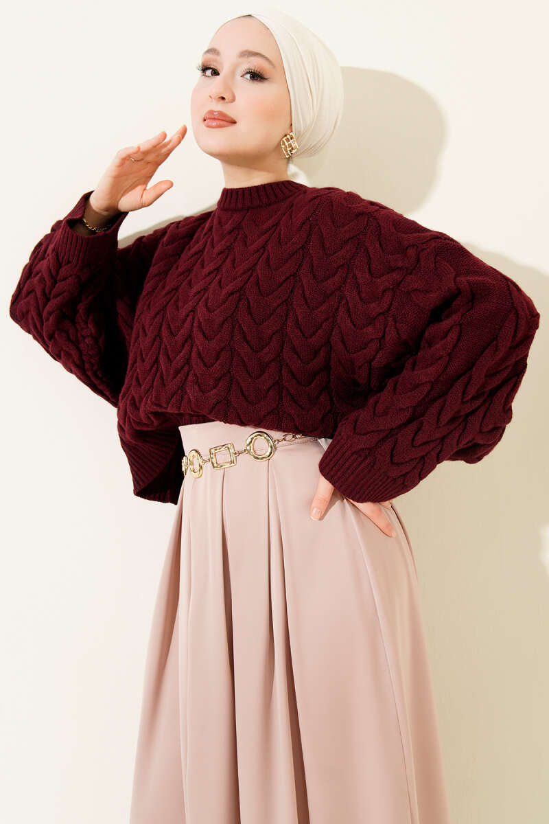 Kabartmalı Yarasa Kol Triko Kazak Gül Kurusu