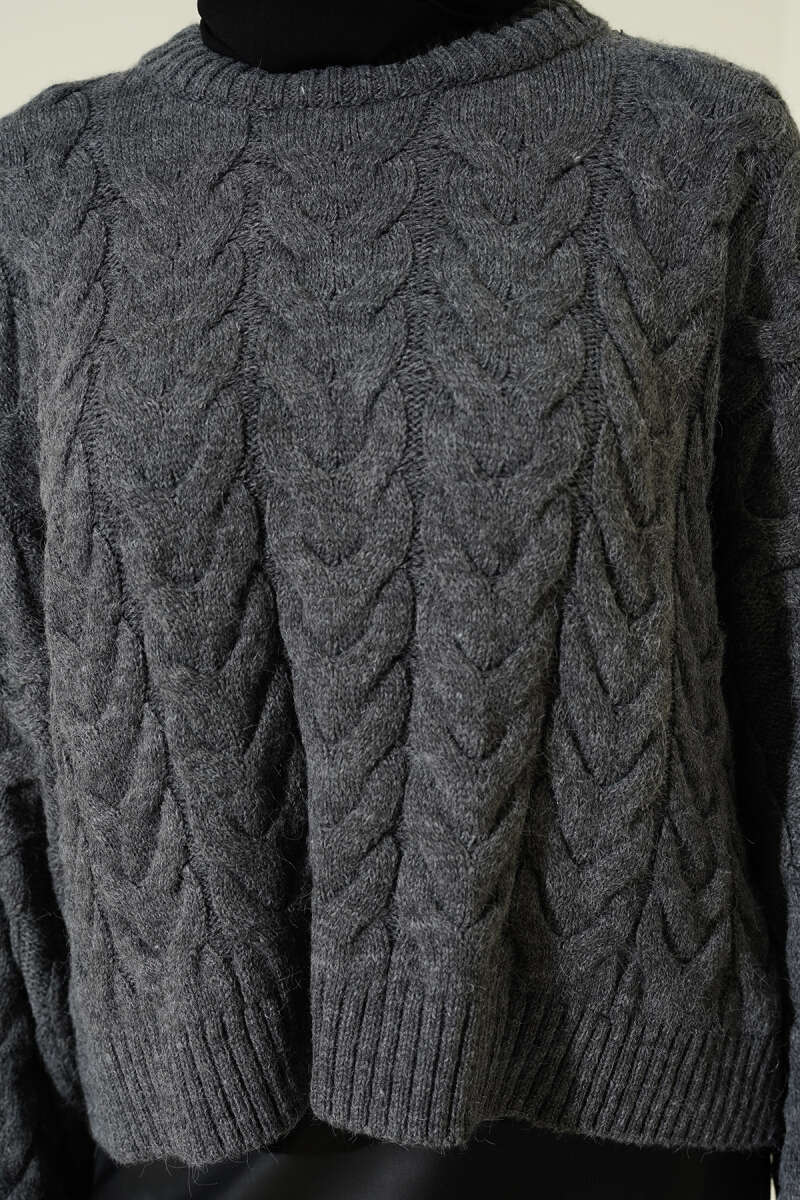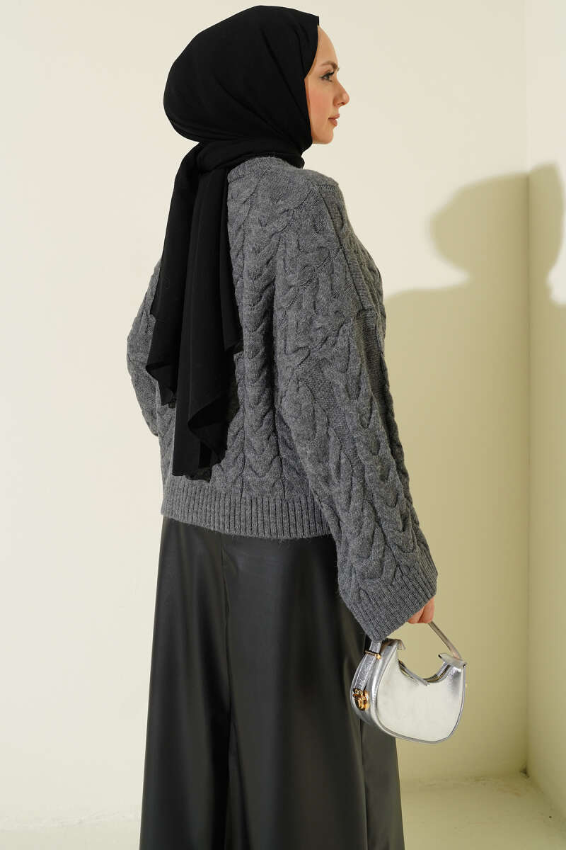 Örgülü Salaş Triko Kazak Füme