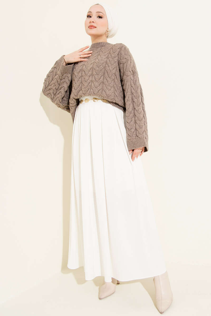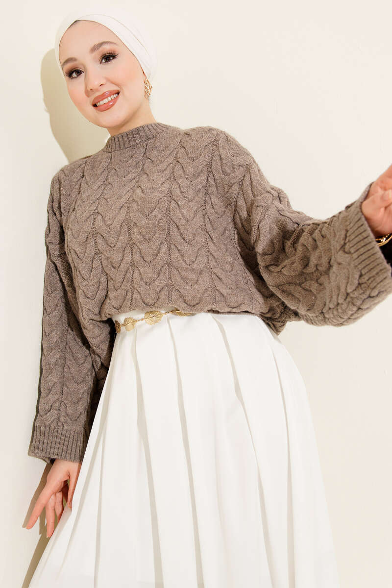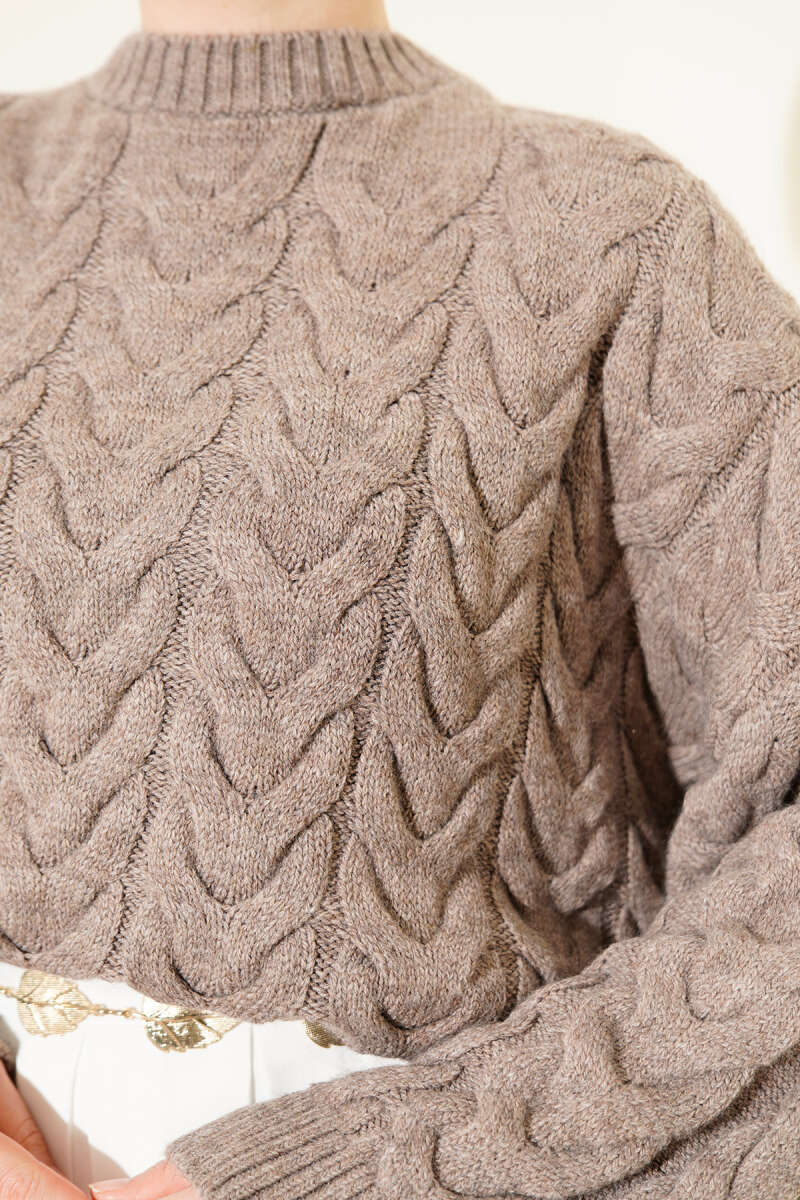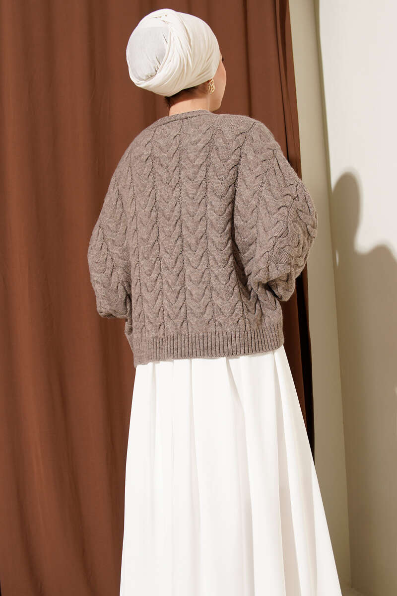 Kabartmalı Yarasa Kol Triko Kazak Vizon