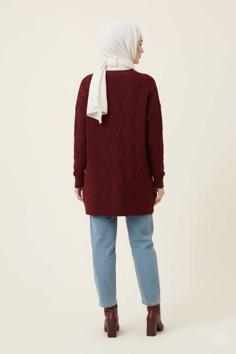 Sepet Örgü Uzun Triko Hırka Lacivert