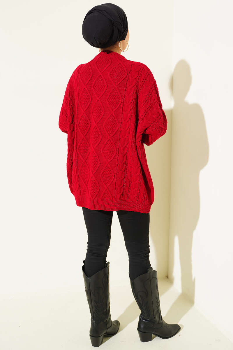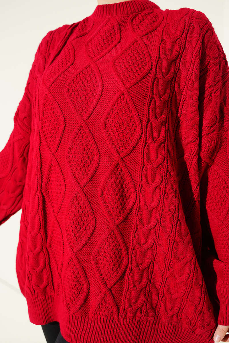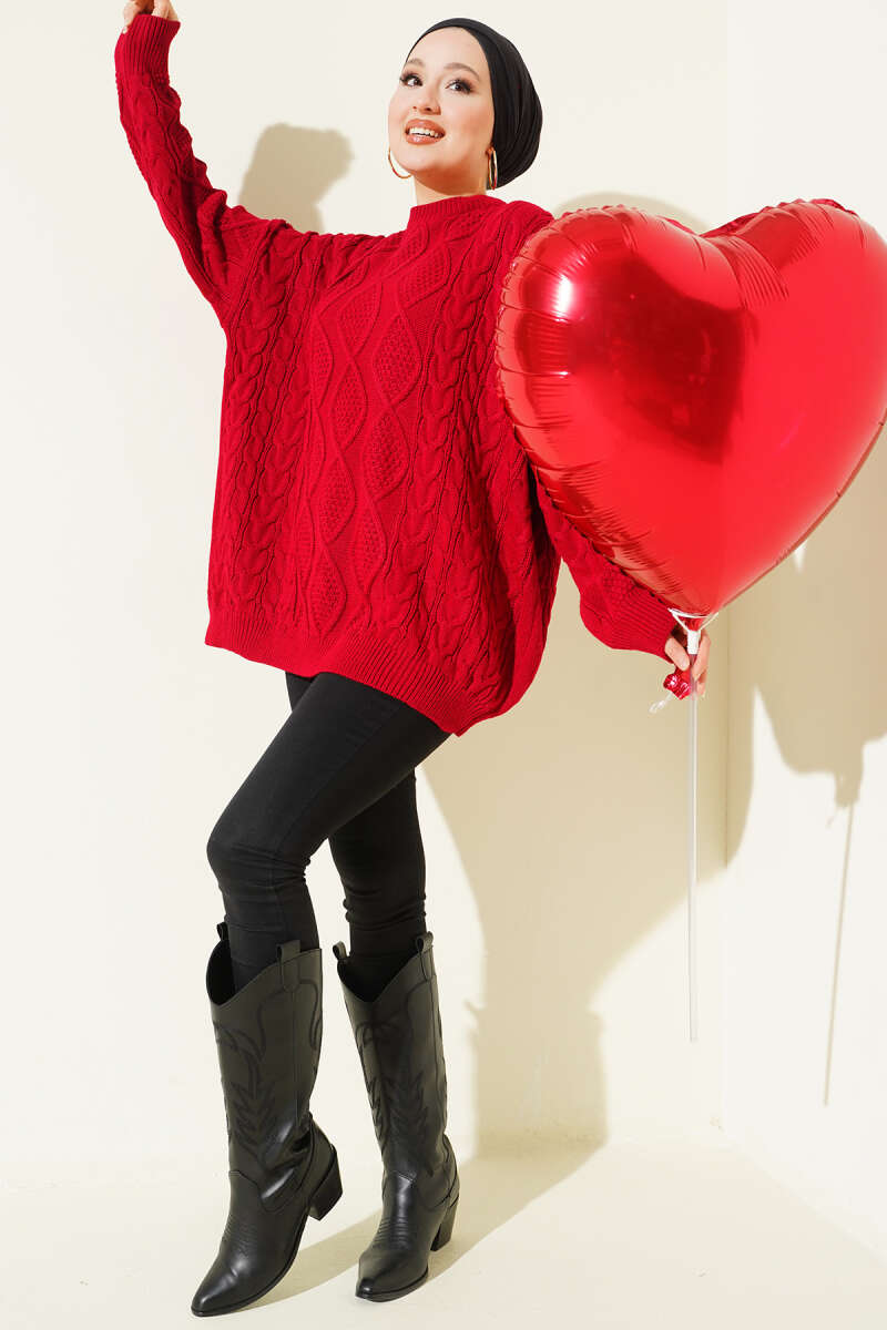 İp Bağlamalı Duble Kol Triko Tunik Bordo