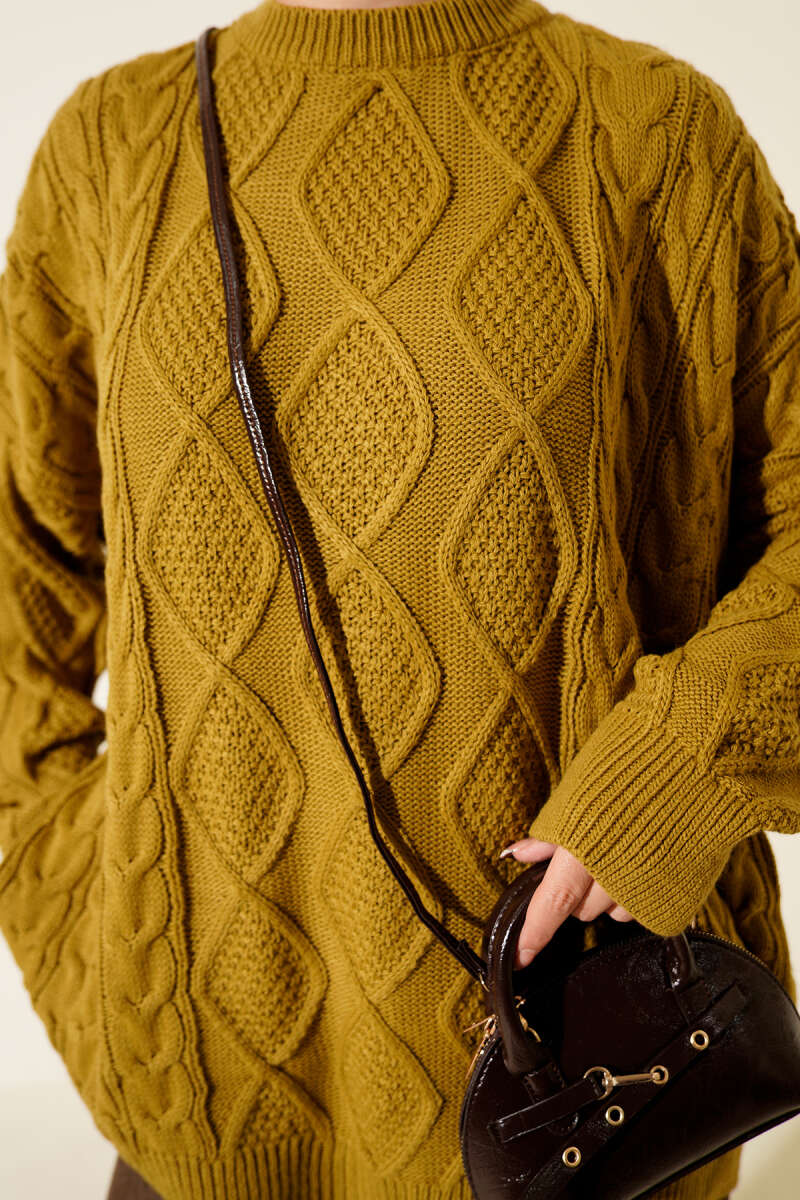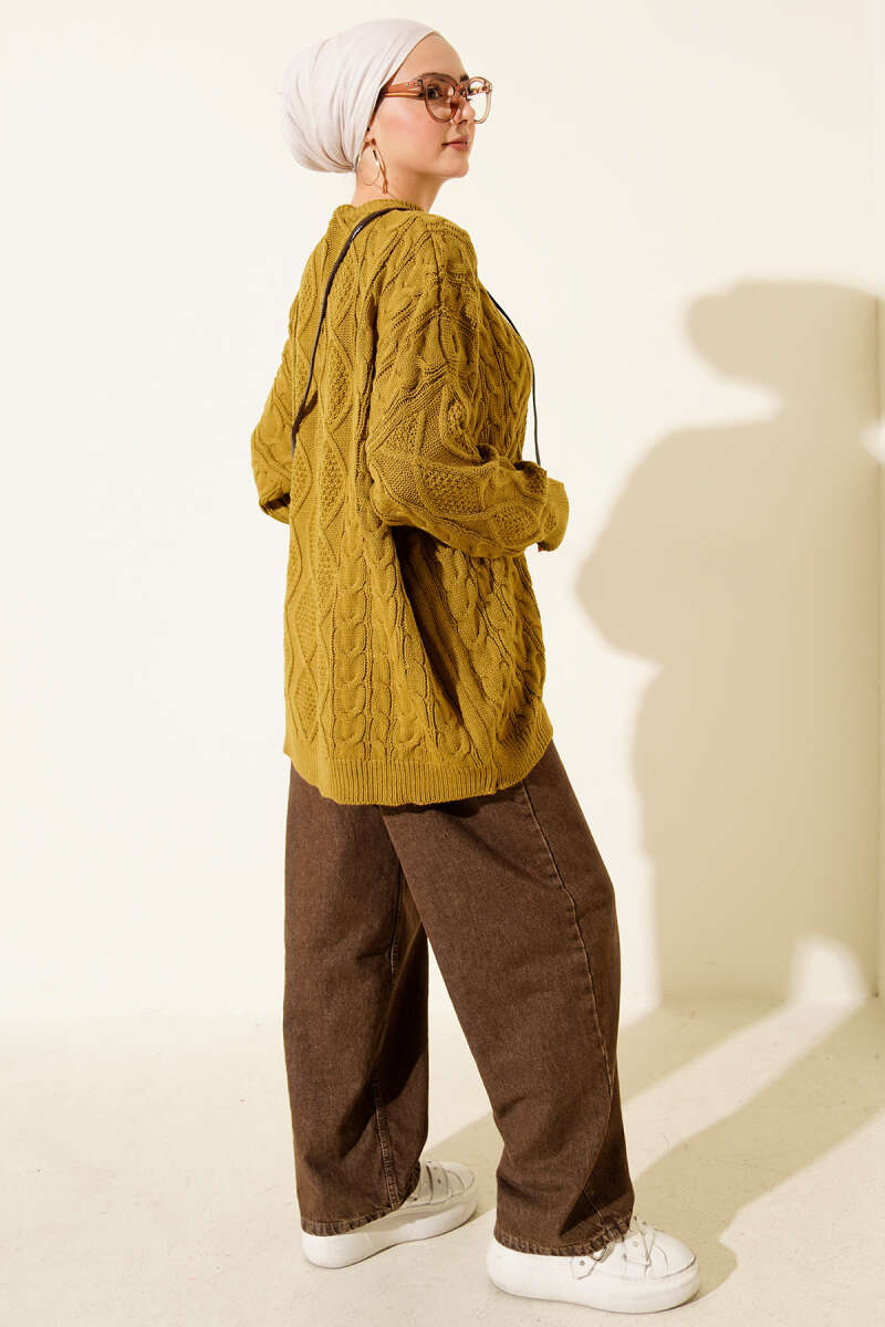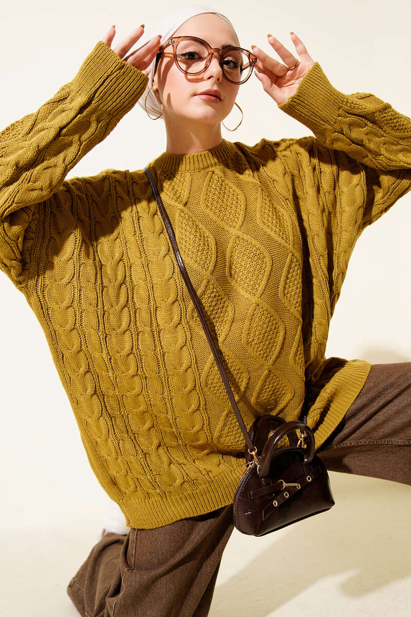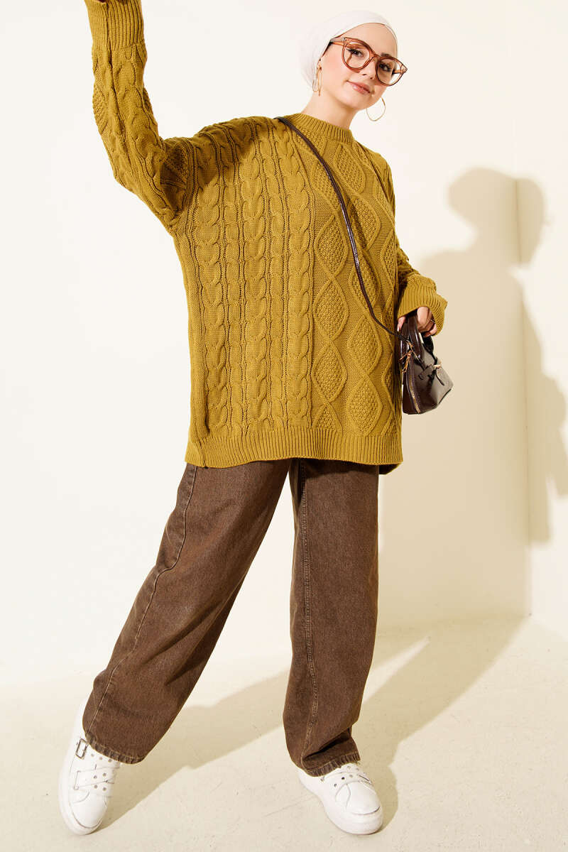 Balıkçı Yaka Parmak Geçirmeli Triko Kazak Hardal