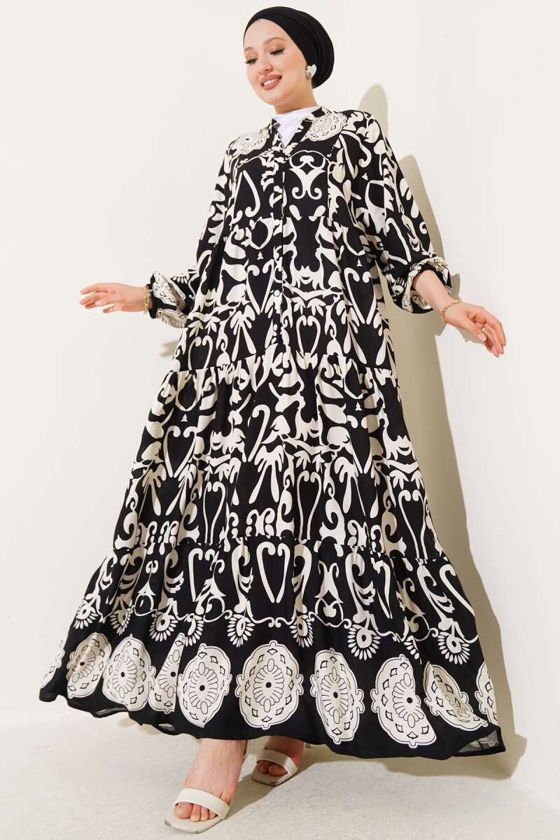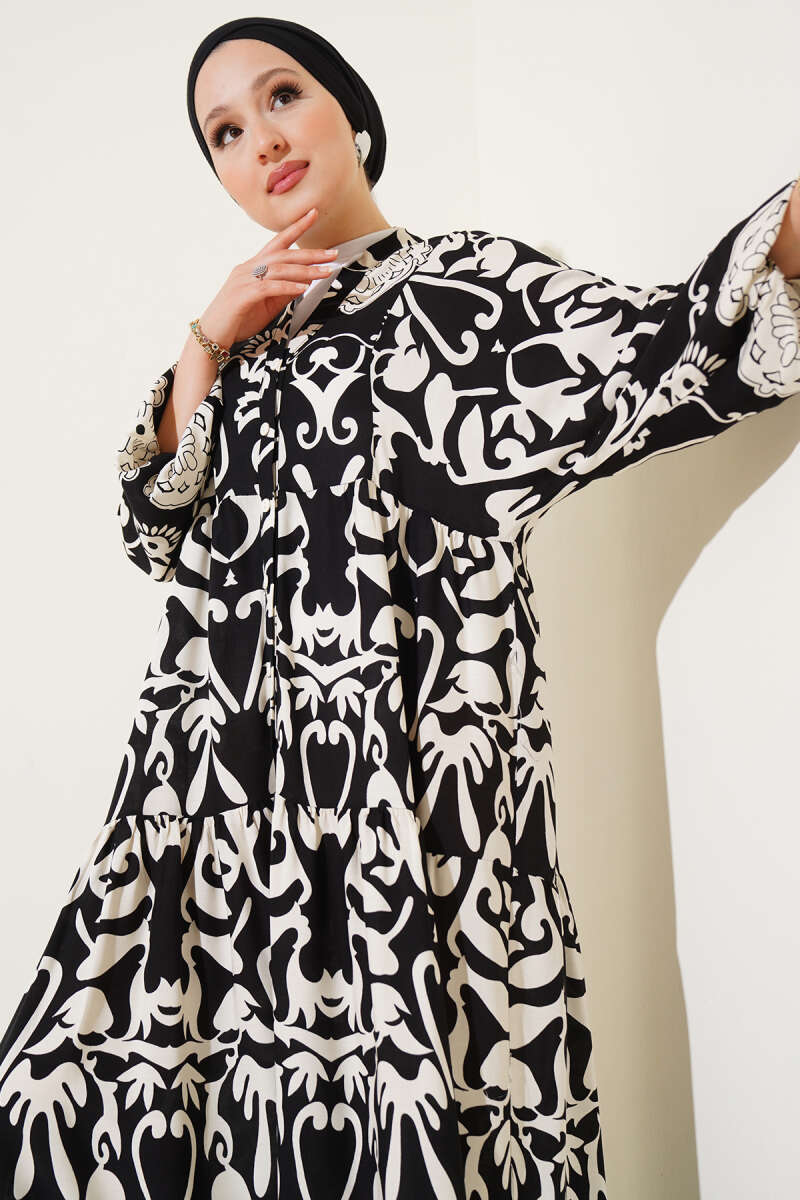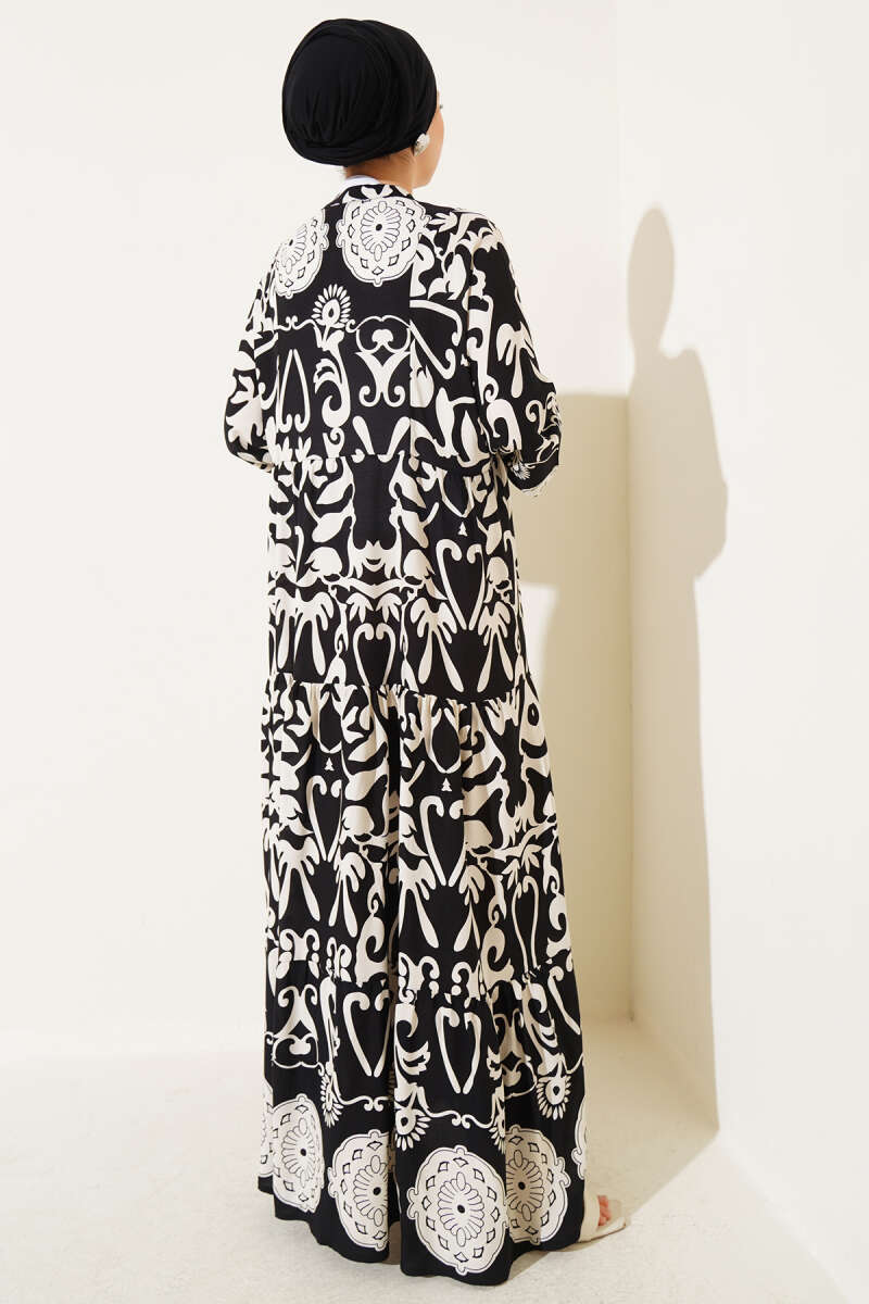 Düğmeli Tensel İnce Kemerli Elbise Siyah