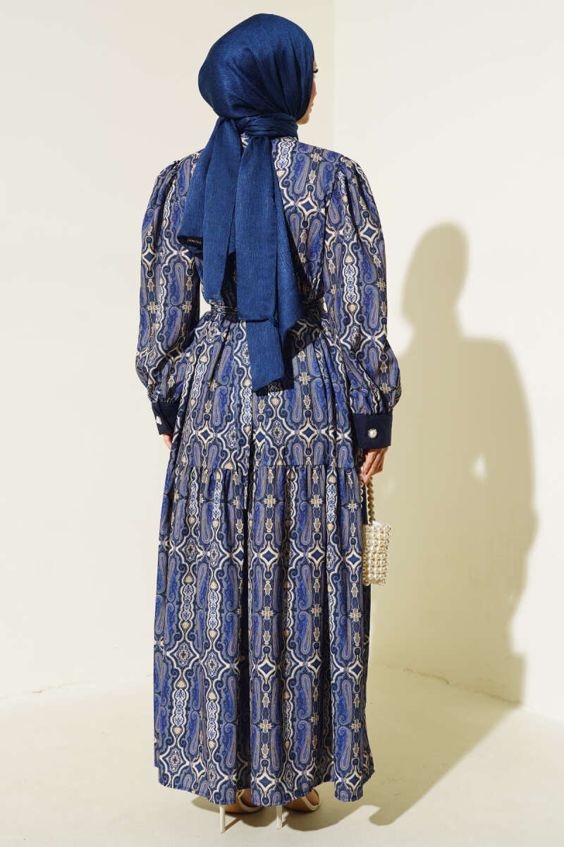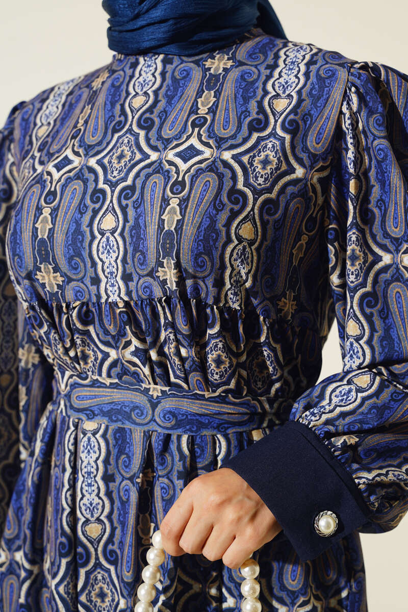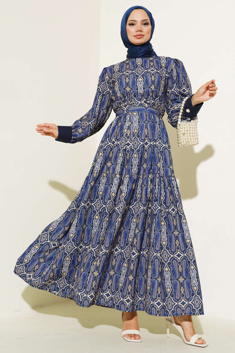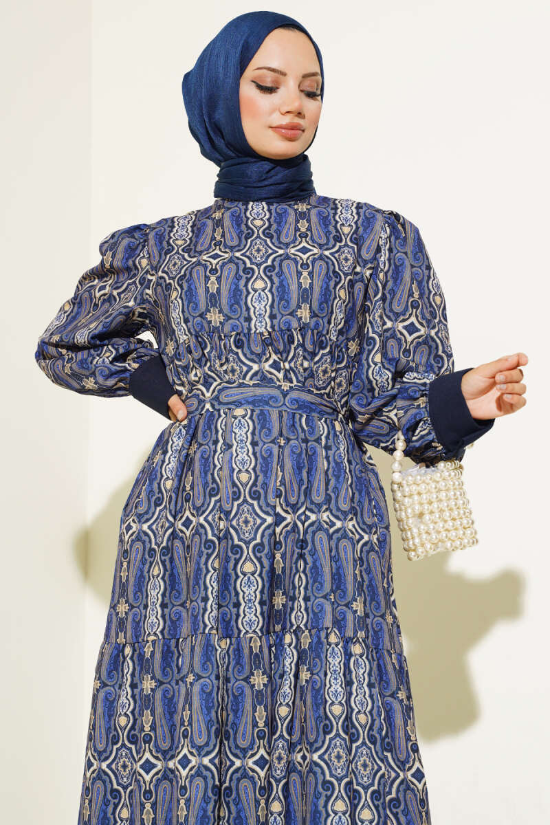 Yarım Yaka Fermuarlı Scuba Elbise Lacivert