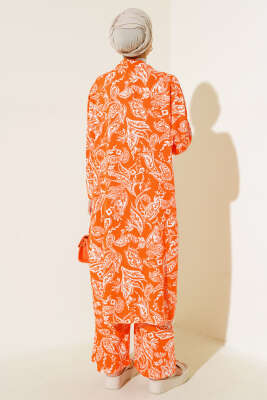 Otantik Desen Salaş Kimono İkili Takım Oranj