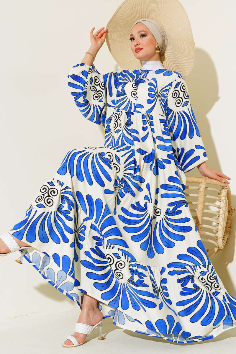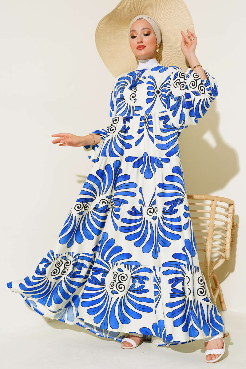 Bilek Bağlamalı Kuşaklı Abiye Elbise Lacivert