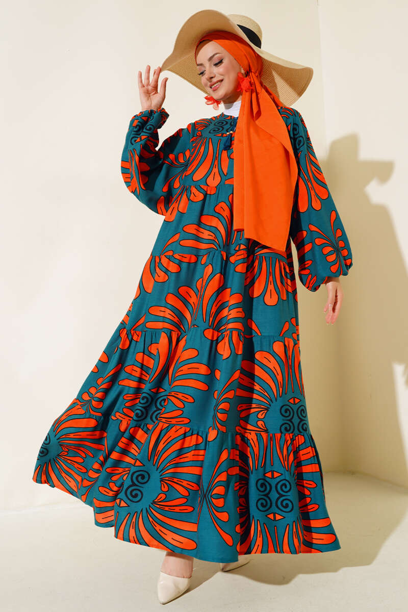 Bilek Bağlamalı Kuşaklı Abiye Elbise Haki