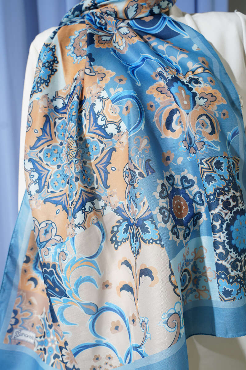 Otantik Desenli Çiçekli Şal Acı Kahve
