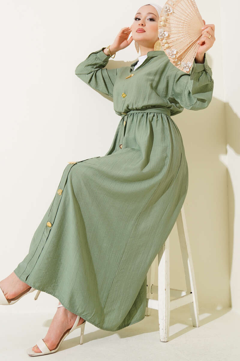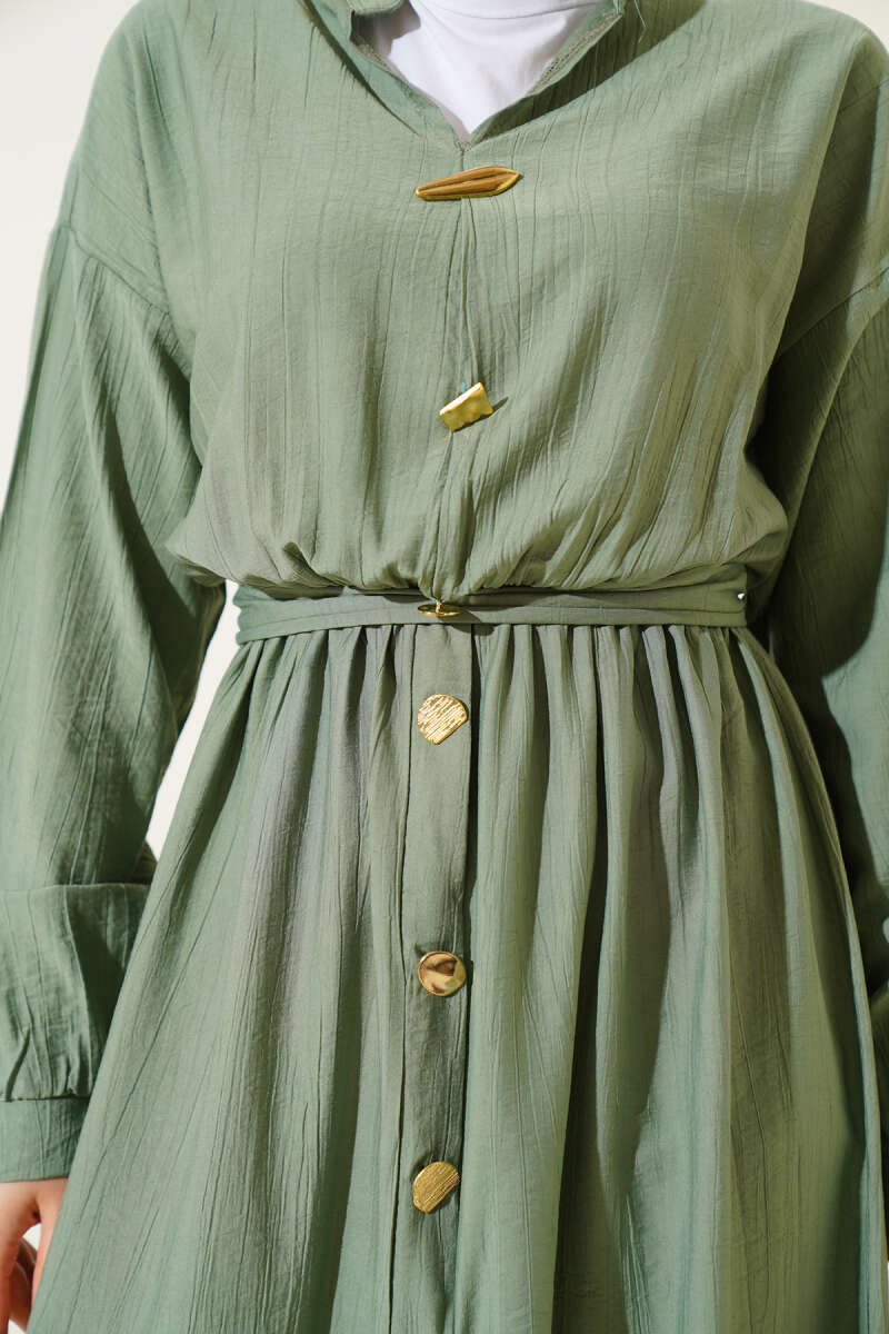 Önü Düğmeli Ekose Desen Elbise Siyah
