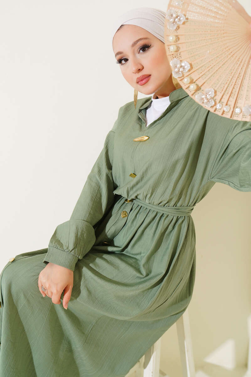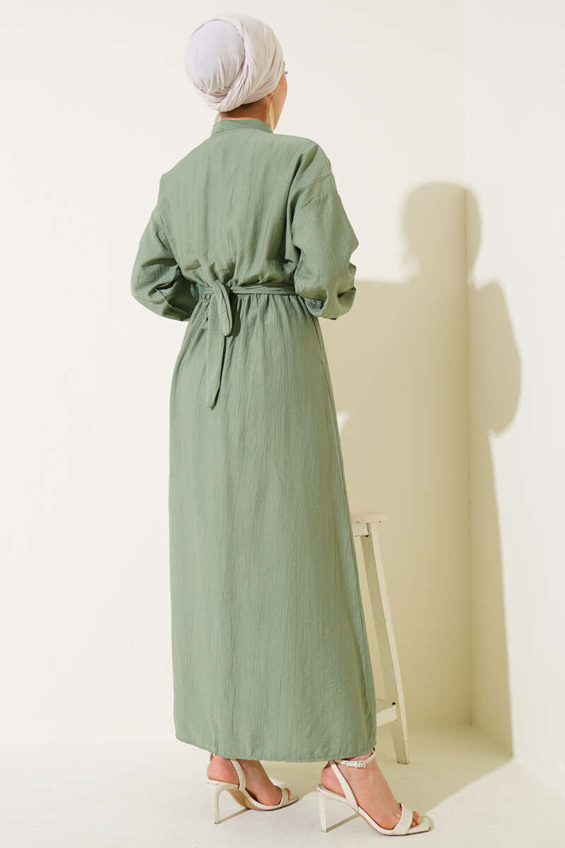 Yarım Yaka Fermuarlı Denim Elbise Açık Mavi