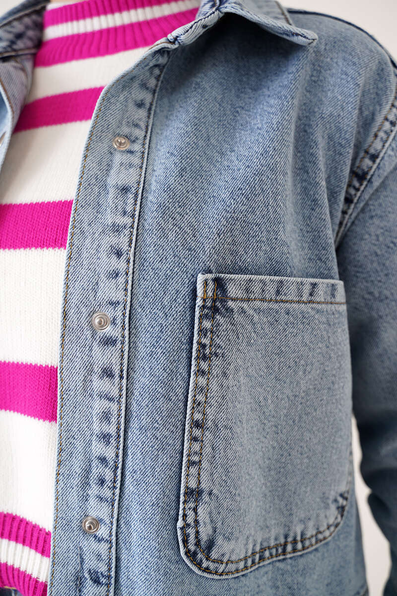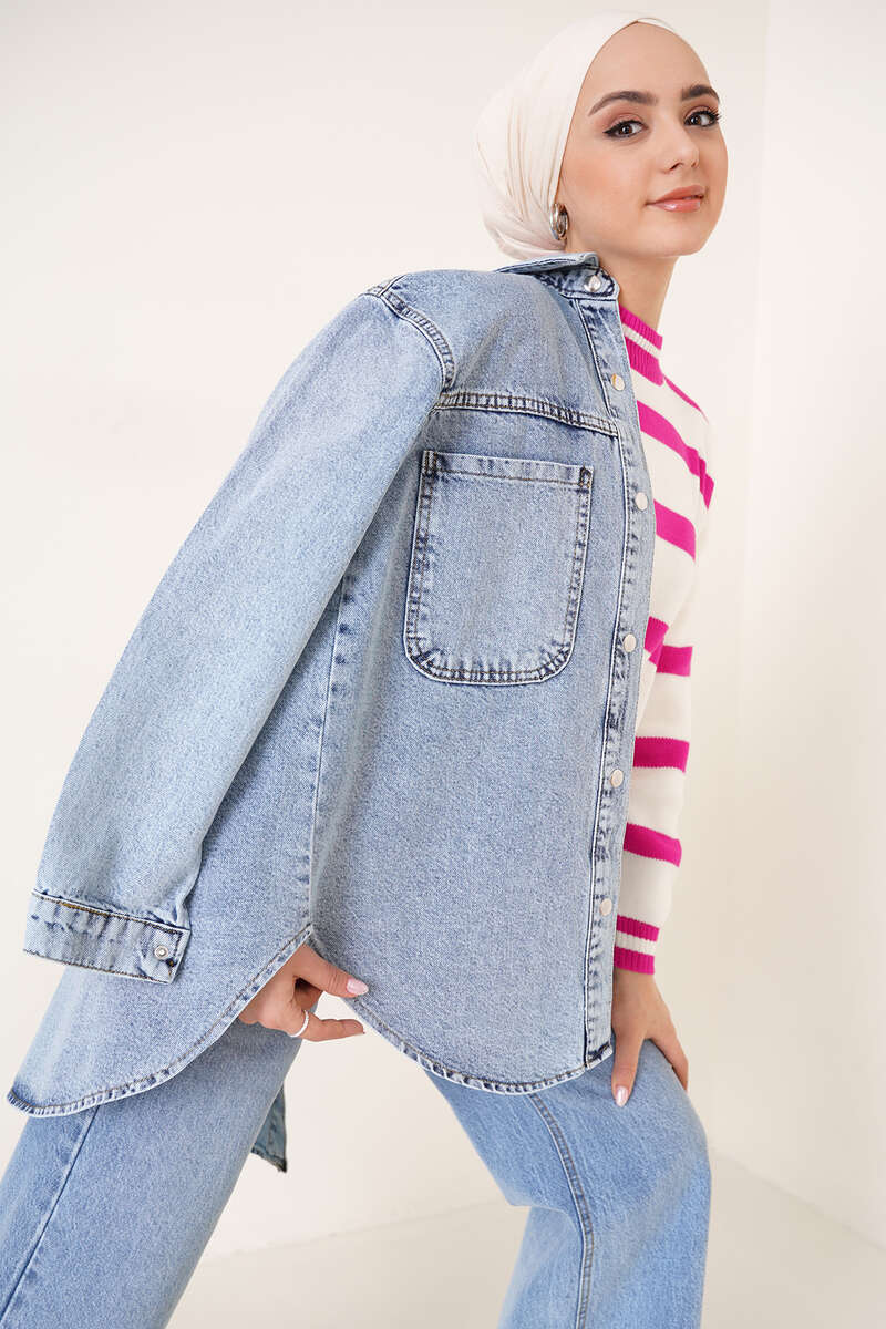 Yeni sezon kot ceketimiz şık görünümüyle sizler için geldi. Ceketimizin etek kısmı oval kesimdir. Farklı bir hava katmaktadır. İki adet göğüs cebi bulunmaktadır. Önü çıtçıt düğmelidir. Her kıyafetinizle rahatlıkla kombinleyebilirsiniz.