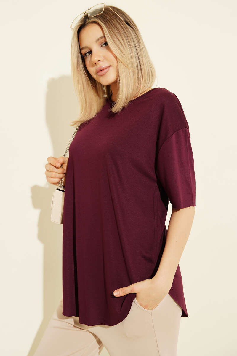 Oval Lazer Kesim T-shirt Mürdüm
