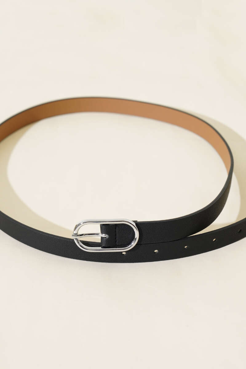 Oval Tokalı İnce Kemer Siyah Gümüş