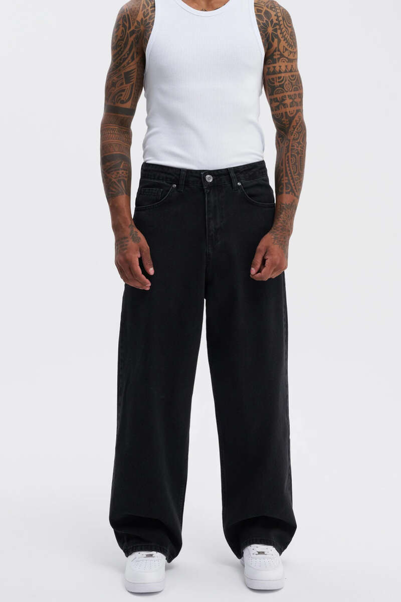 Boru Paça Regular Fit Erkek Kot Pantolon Siyah