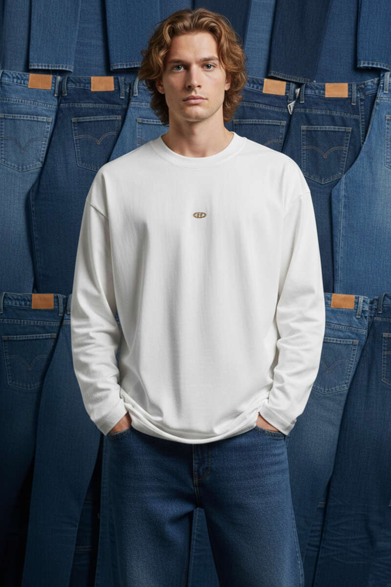 Gömlek Yaka Baskılı Erkek Sweatshirt Ekru