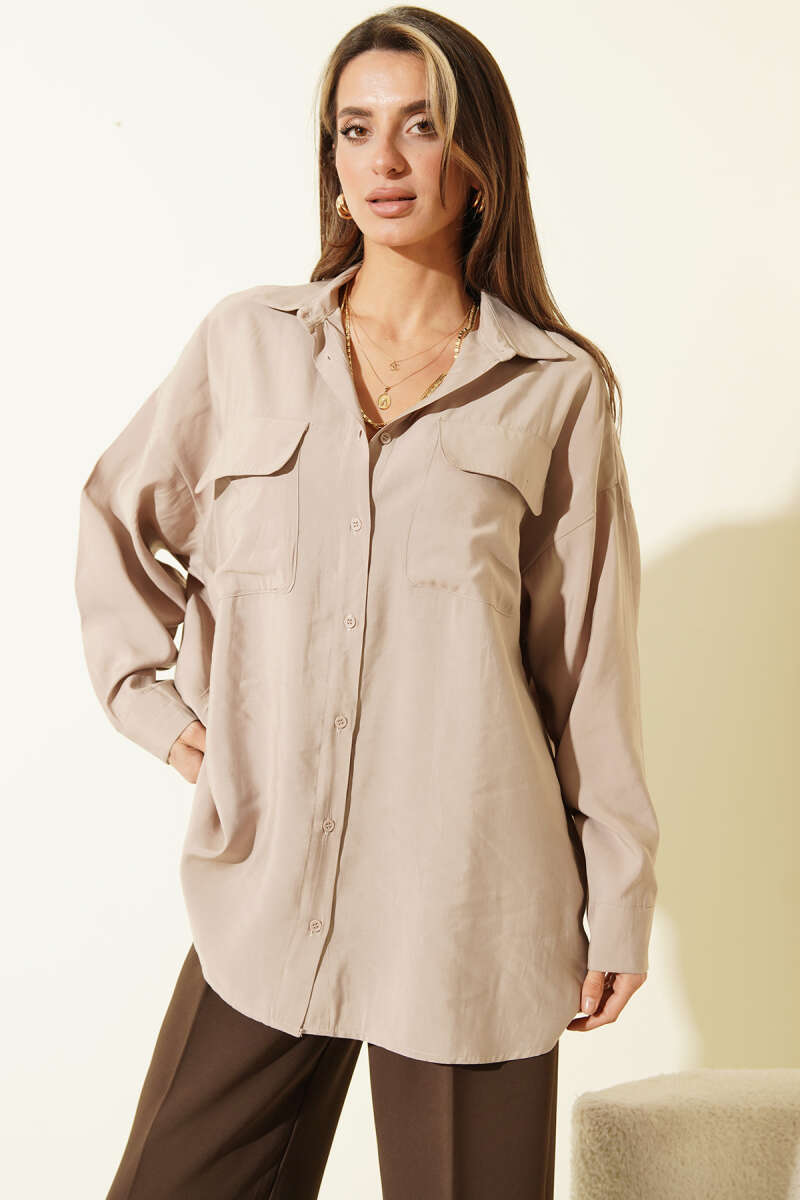 Çift Cep Buklet Kaban Latte