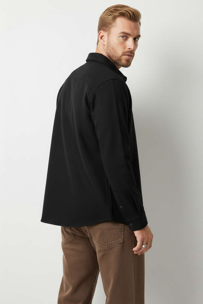 Yaka Düğmeli Erkek Spor Gömlek Siyah