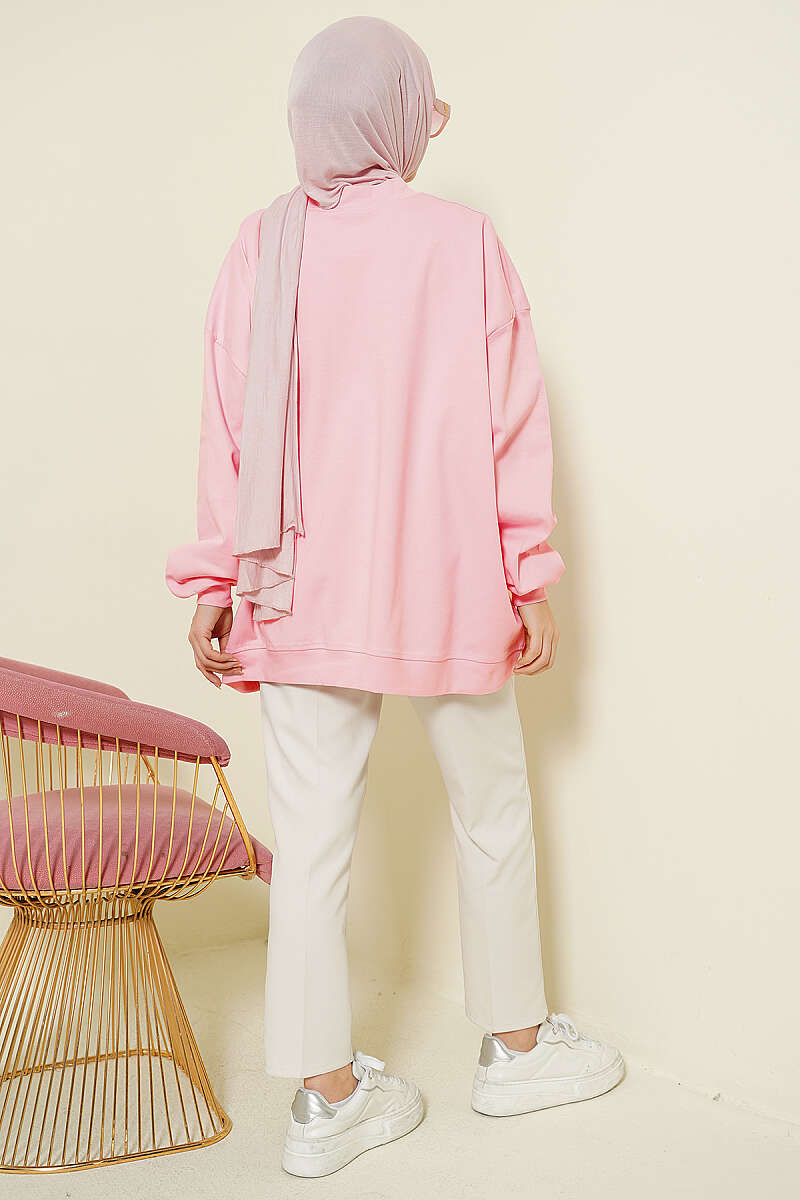 Loyşa Düşük Omuz Basic Tunik Pembe