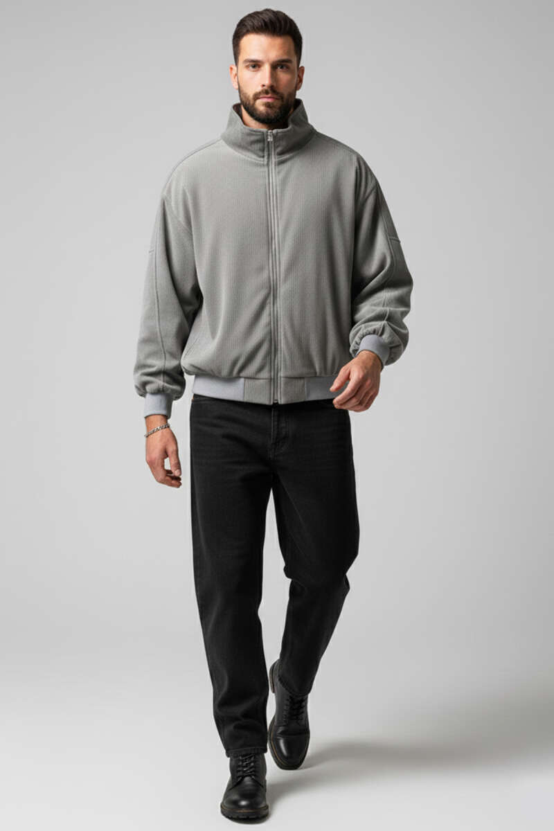 Fermuarlı Bel Lastikli Erkek Kaşe Mont Füme