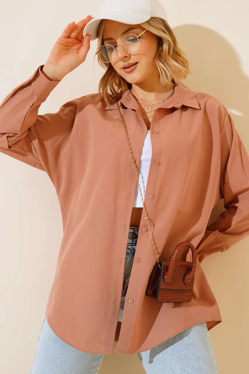 Oversize Kalıp Basic Gömlek Camel