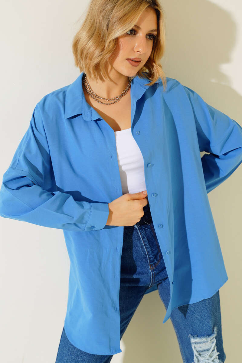 Yeni sezon gömleğimiz şık ve sportif tarzıyla sizlerle beraber. Oversize modeldir. Boydan düğmelidir. Düşük omuzlu modeldir. Yumuşak dokusuyla rahatlıkla kombinleyeceğiniz gömleğimizin renk seçenekleri mevcuttur.