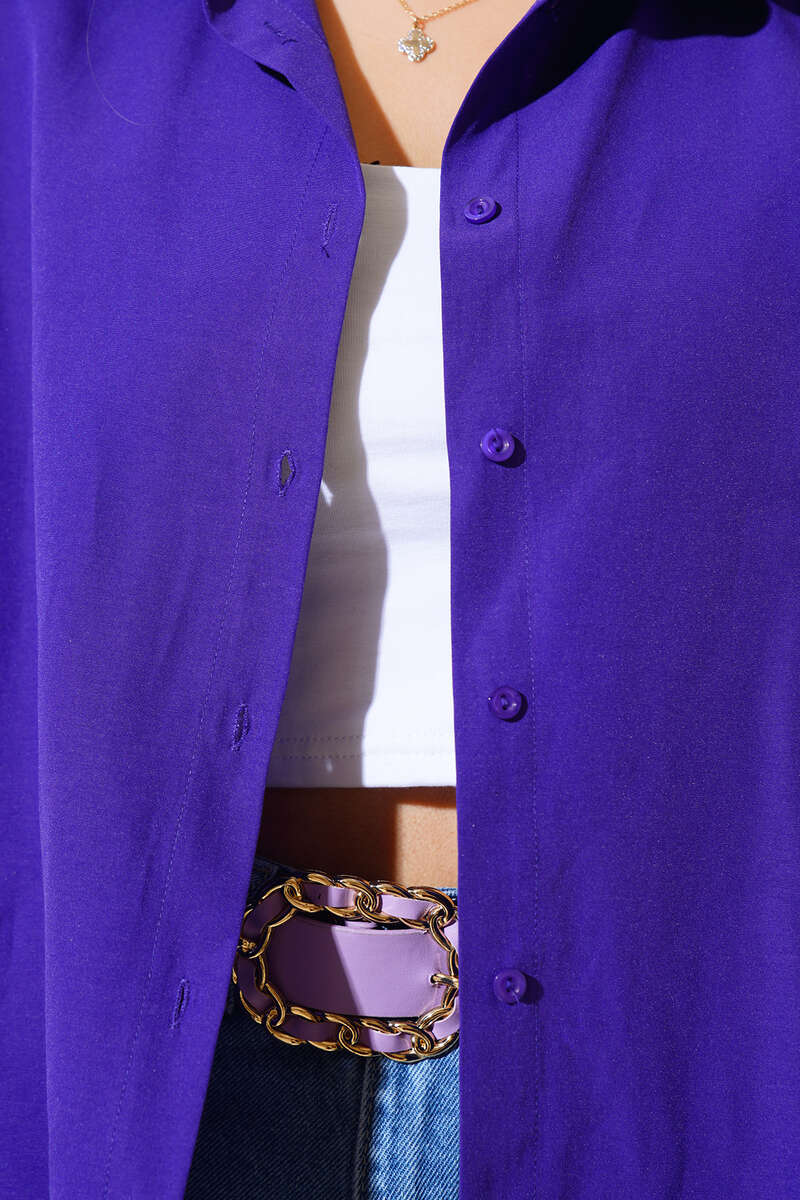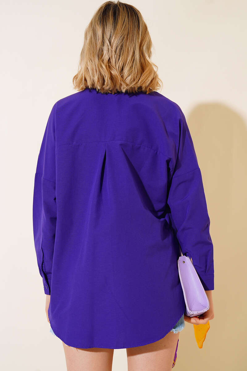 Oversize Kalıp Basic Gömlek Mor