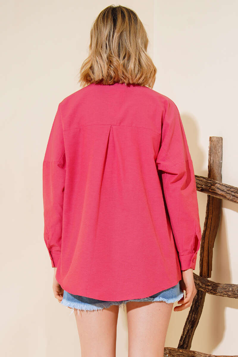 Oversize Kalıp Basic Gömlek Nar Çiçeği