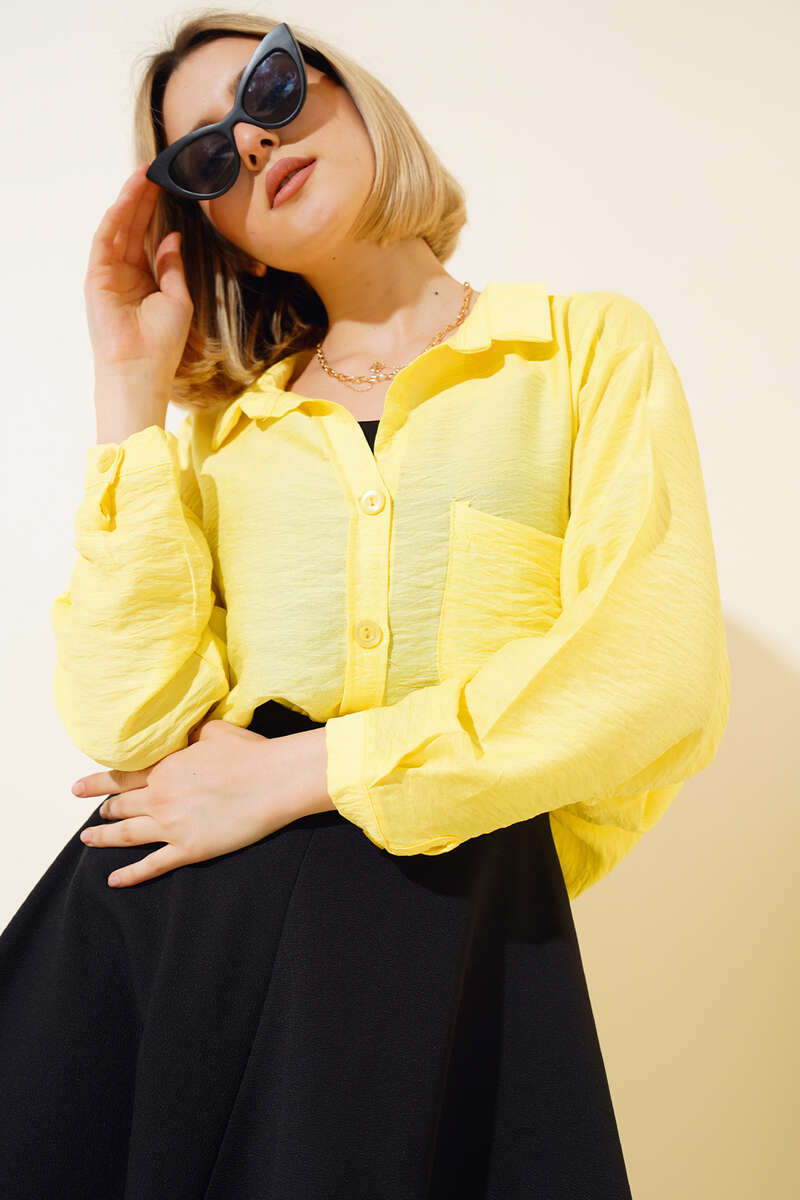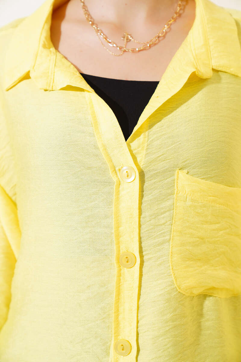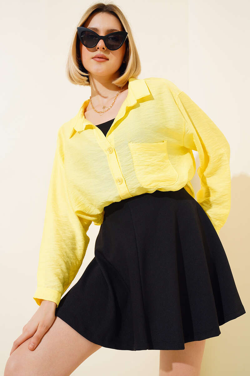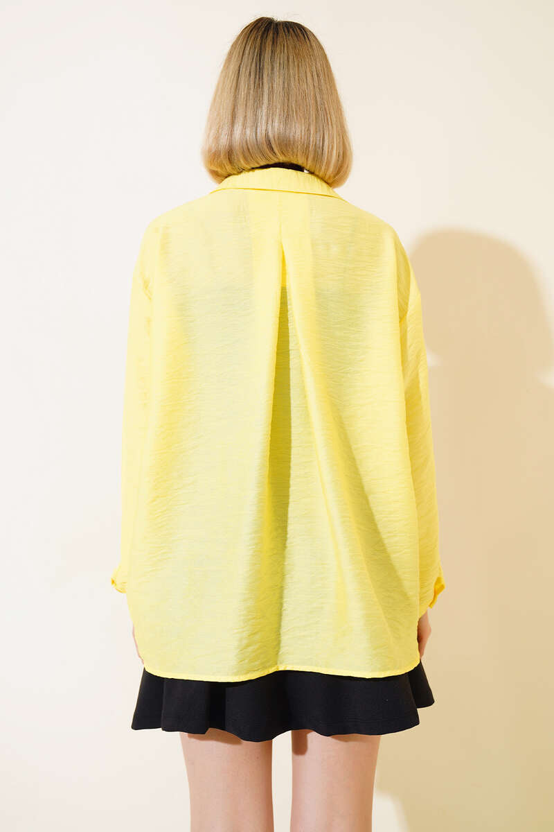Oversize Keten Gömlek Sarı