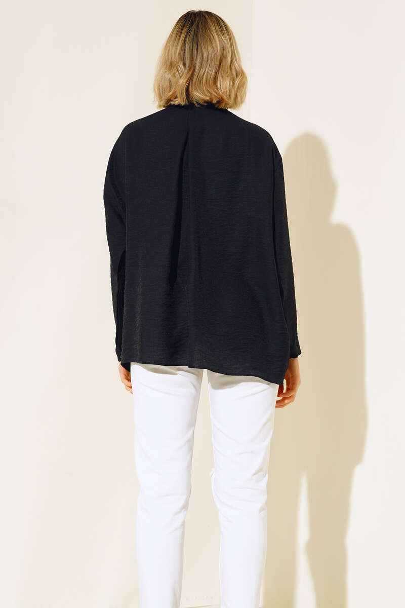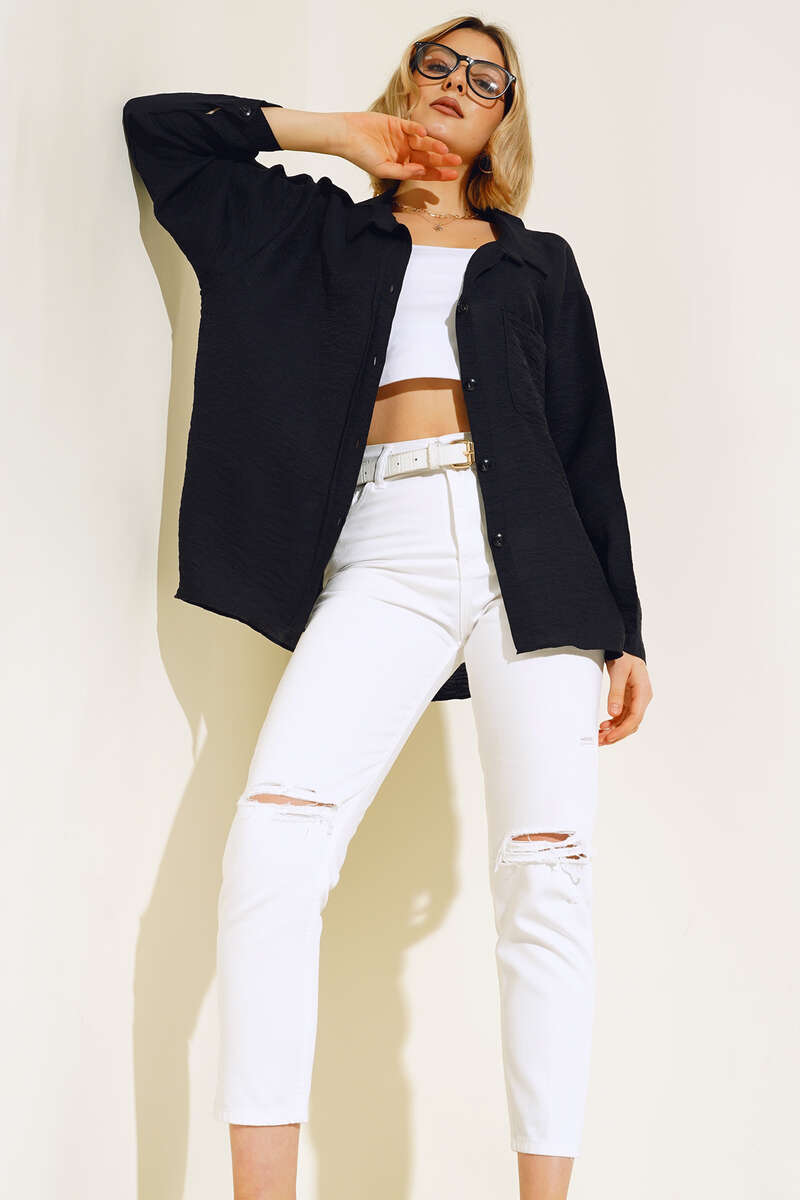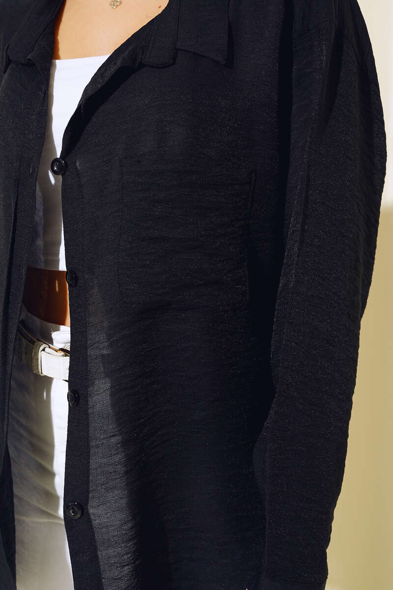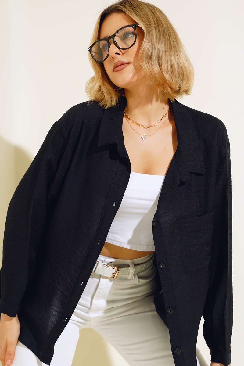 Oversize Keten Gömlek Siyah