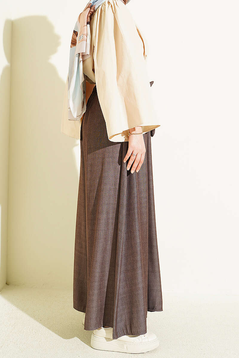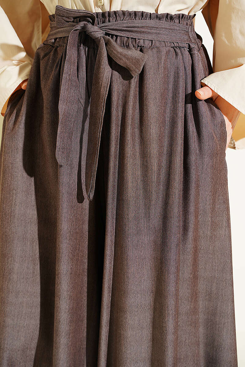 Geniş ve dökümlü oversize kesimiyle modern bir duruş sergileyen bu pantolon, hareket özgürlüğünü en üst seviyeye taşıyarak gün boyu konfor sunuyor. Yüksek bel tasarımı, bel kısmındaki zarif büzgü ve kuşak bağlama detayıyla birleşerek silüetinizi şık bir şekilde vurguluyor. Fonksiyonel yan cepleri ve dökümlü kumaş yapısı sayesinde hem spor ayakkabılarla hem de klasik parçalarla zahmetsizce kombinlenebilen çok yönlü bir parçadır. Kaliteli dokusu ve zamansız formuyla, günlük şıklığınıza sofistike ve rahat bir dokunuş katmak için ideal bir seçimdir.
