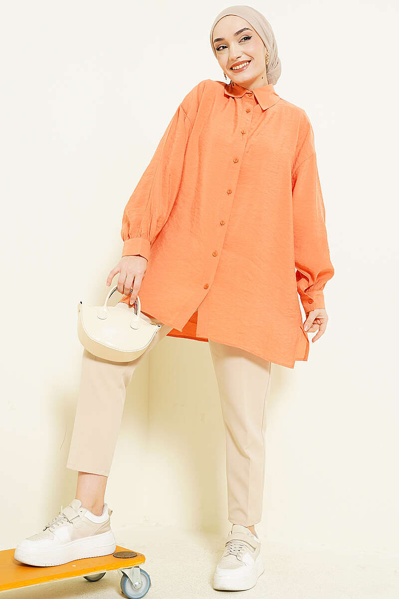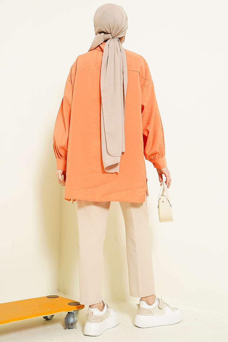 Oversize Tensel Gömlek Oranj