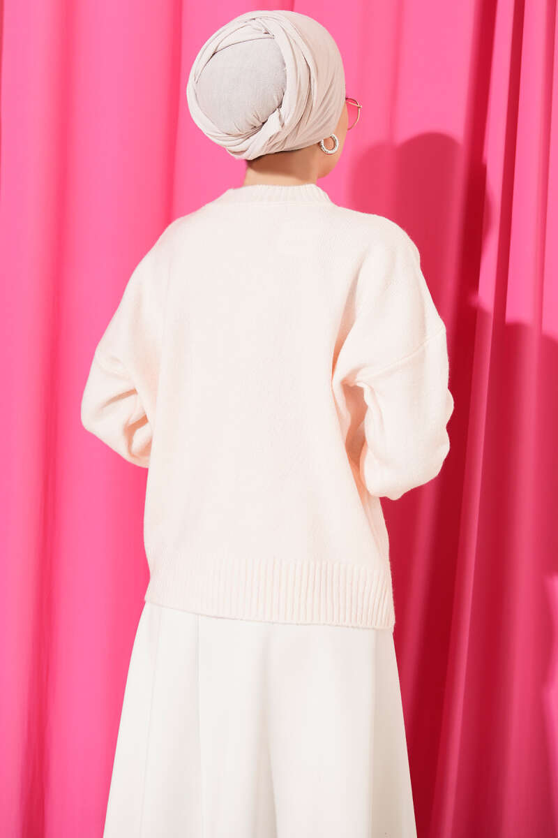 Fitilli Esnek Triko Kazak Beyaz
