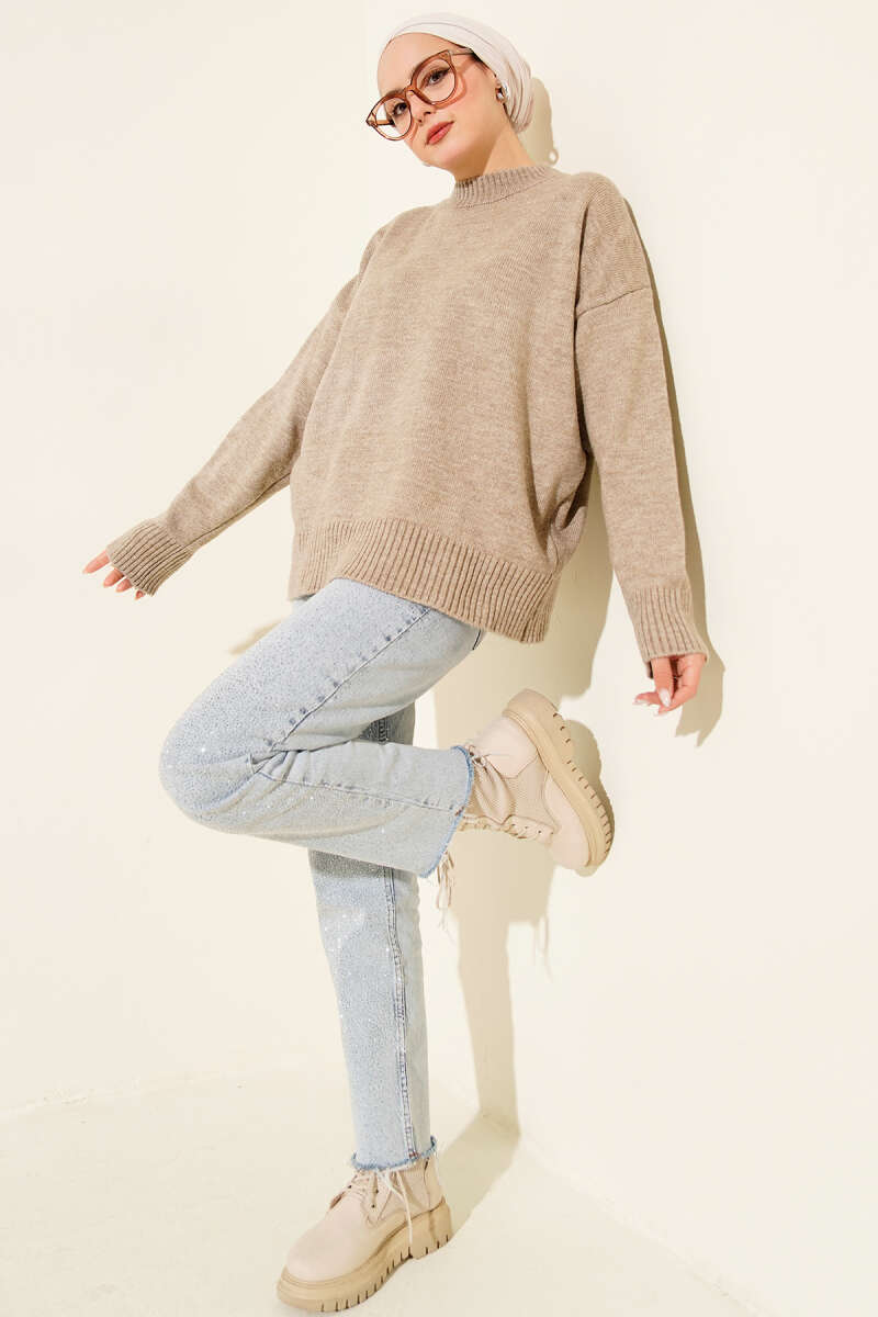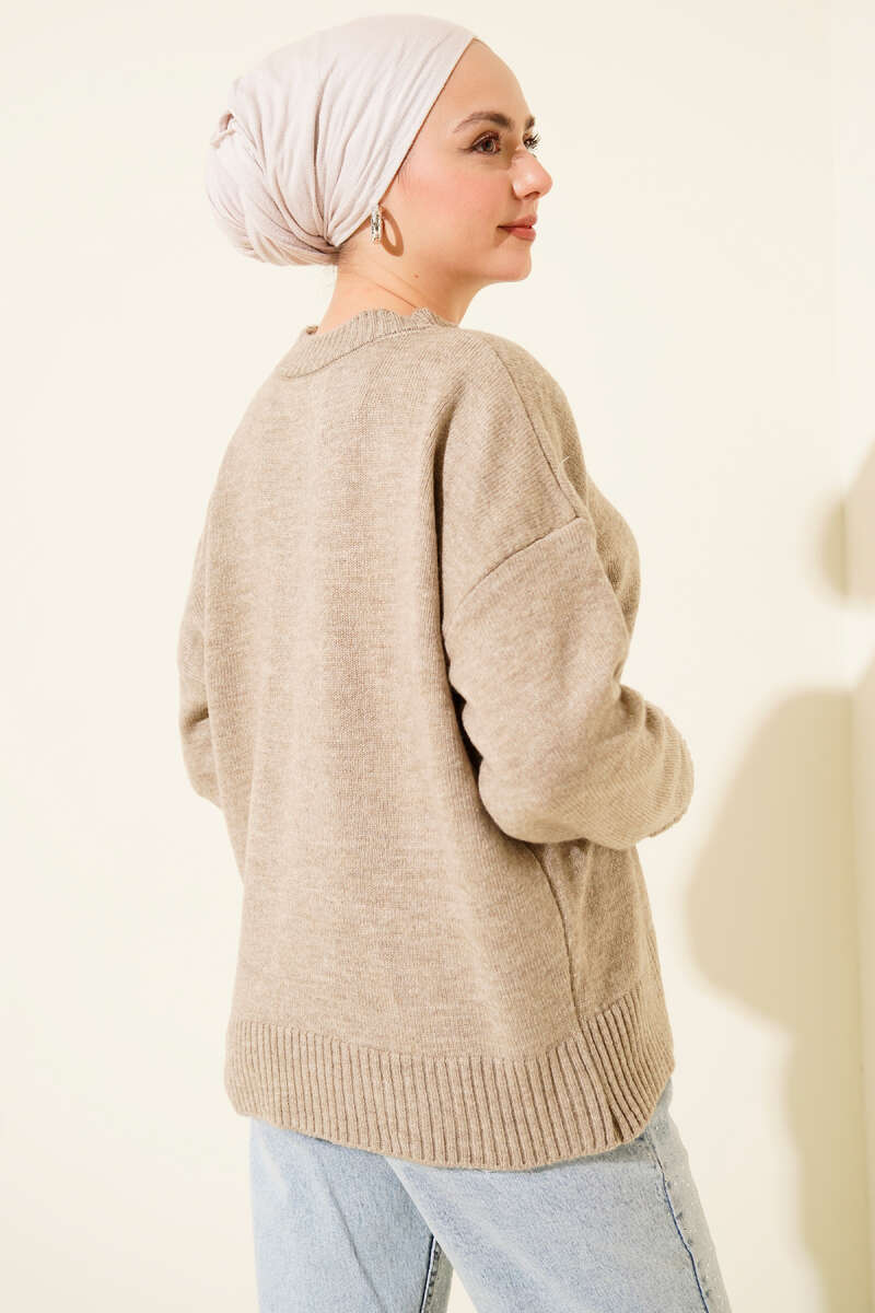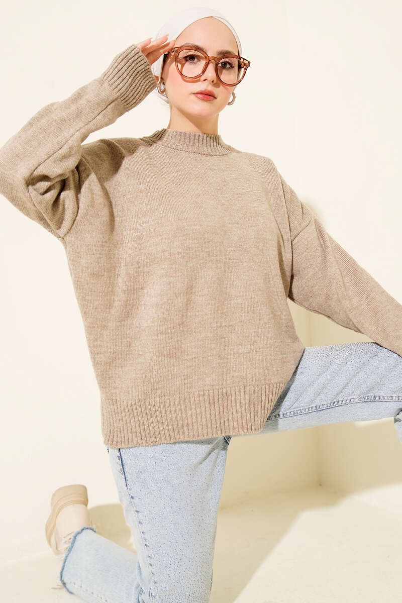 Örme Triko Kazak Vizon