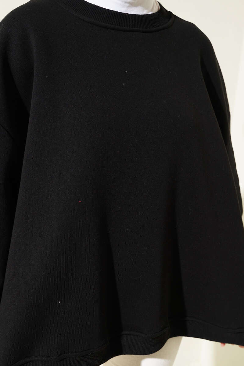 Oversize Üç İplik Basic Tunik Siyah