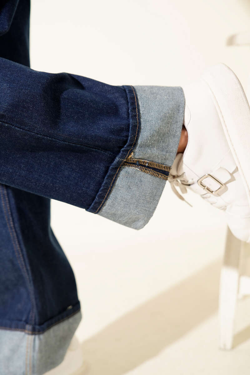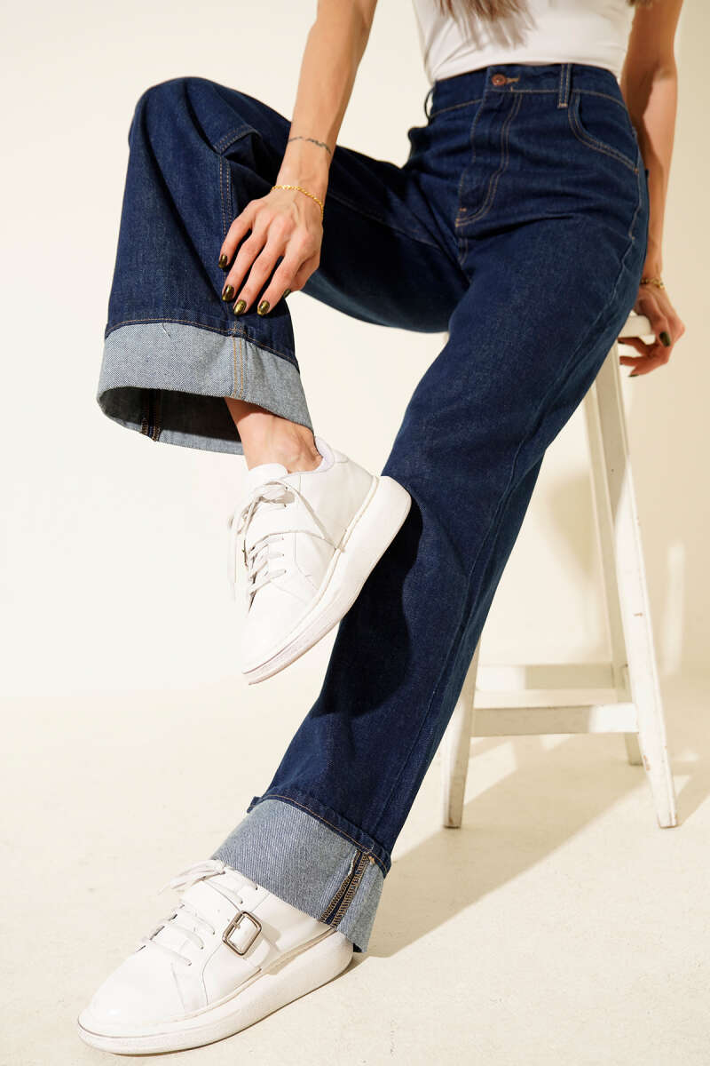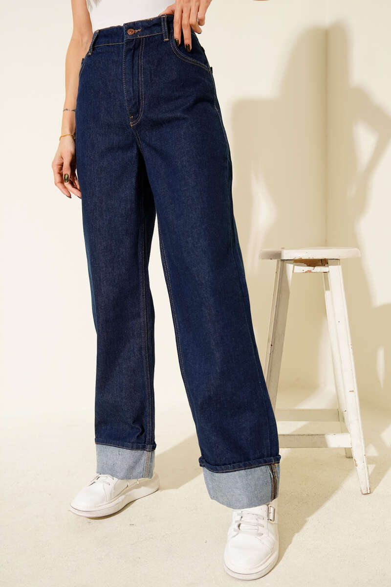 Boru Paça Kesikli Kot Pantolon Açık Mavi