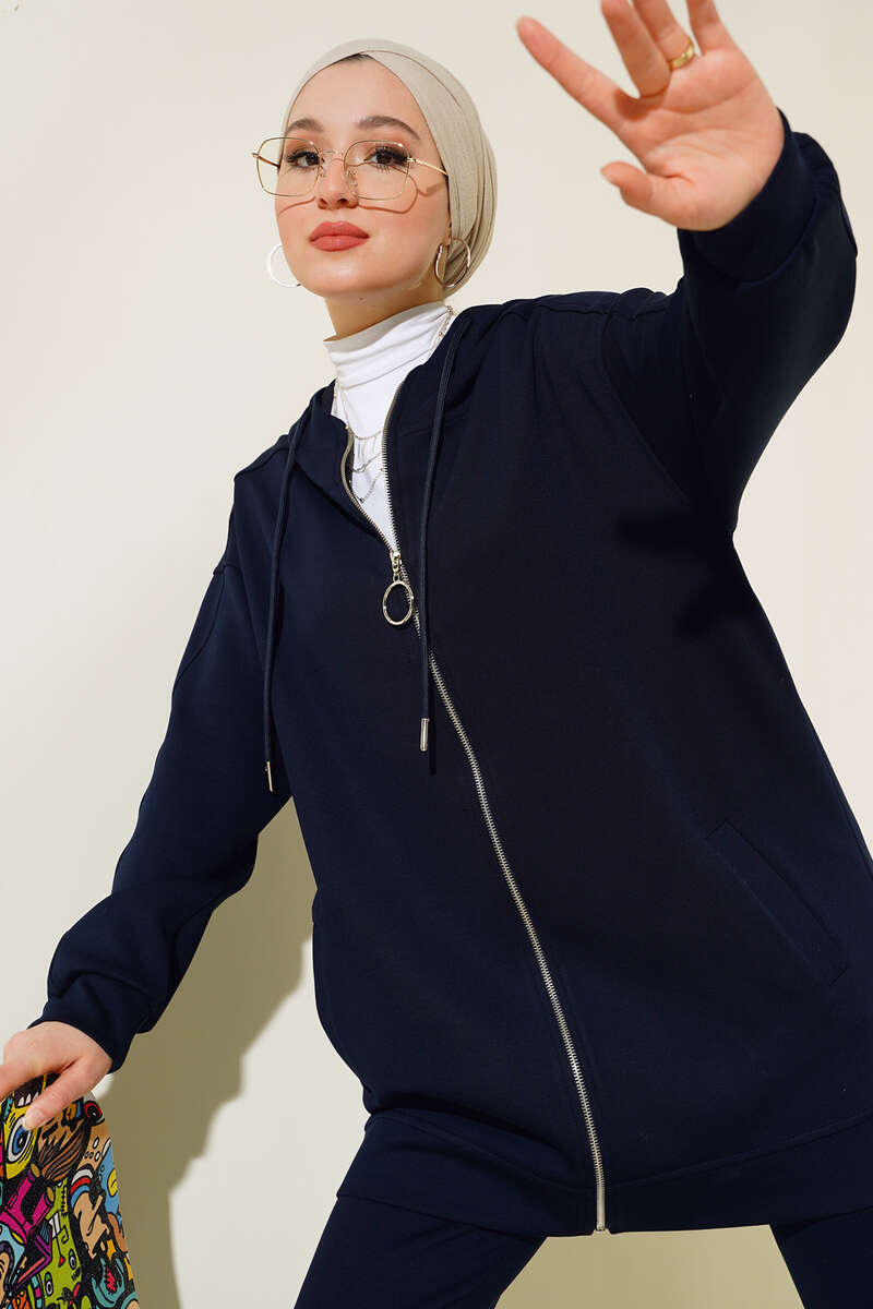 Paça Lastikli Fermuarlı İkili Takım Lacivert